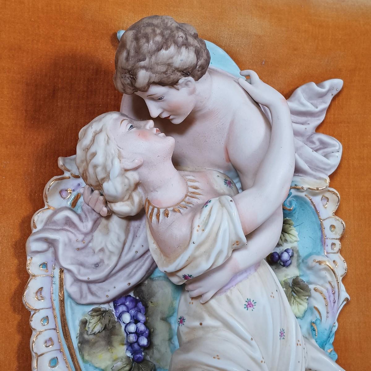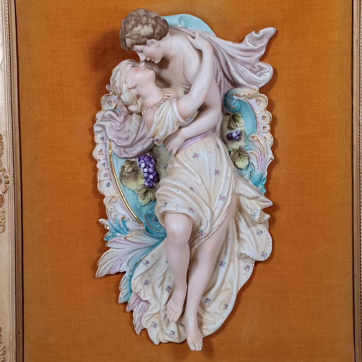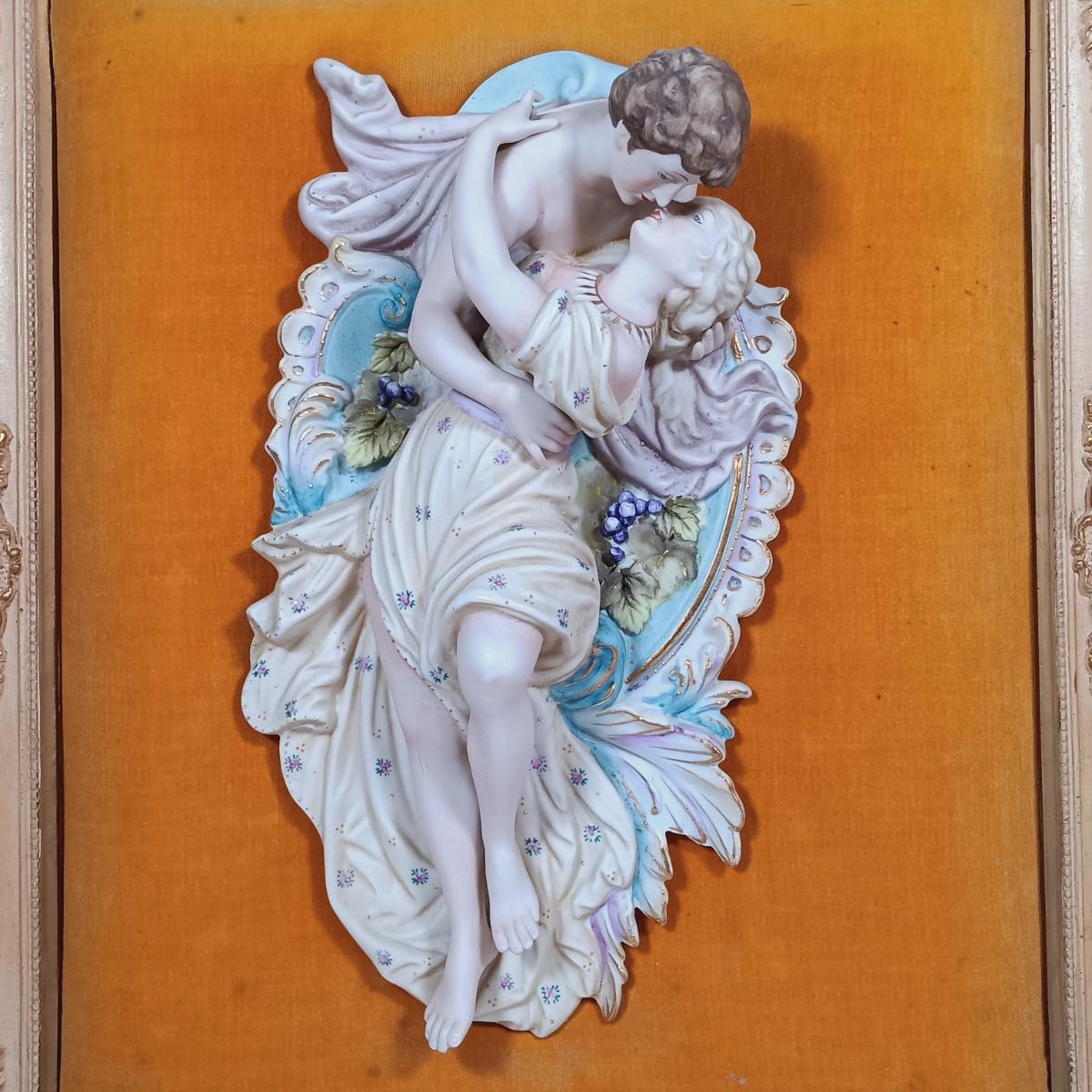 LOT 29: Vintage Porcelain Lovers Reliefs on Framed Velvet Backdrop