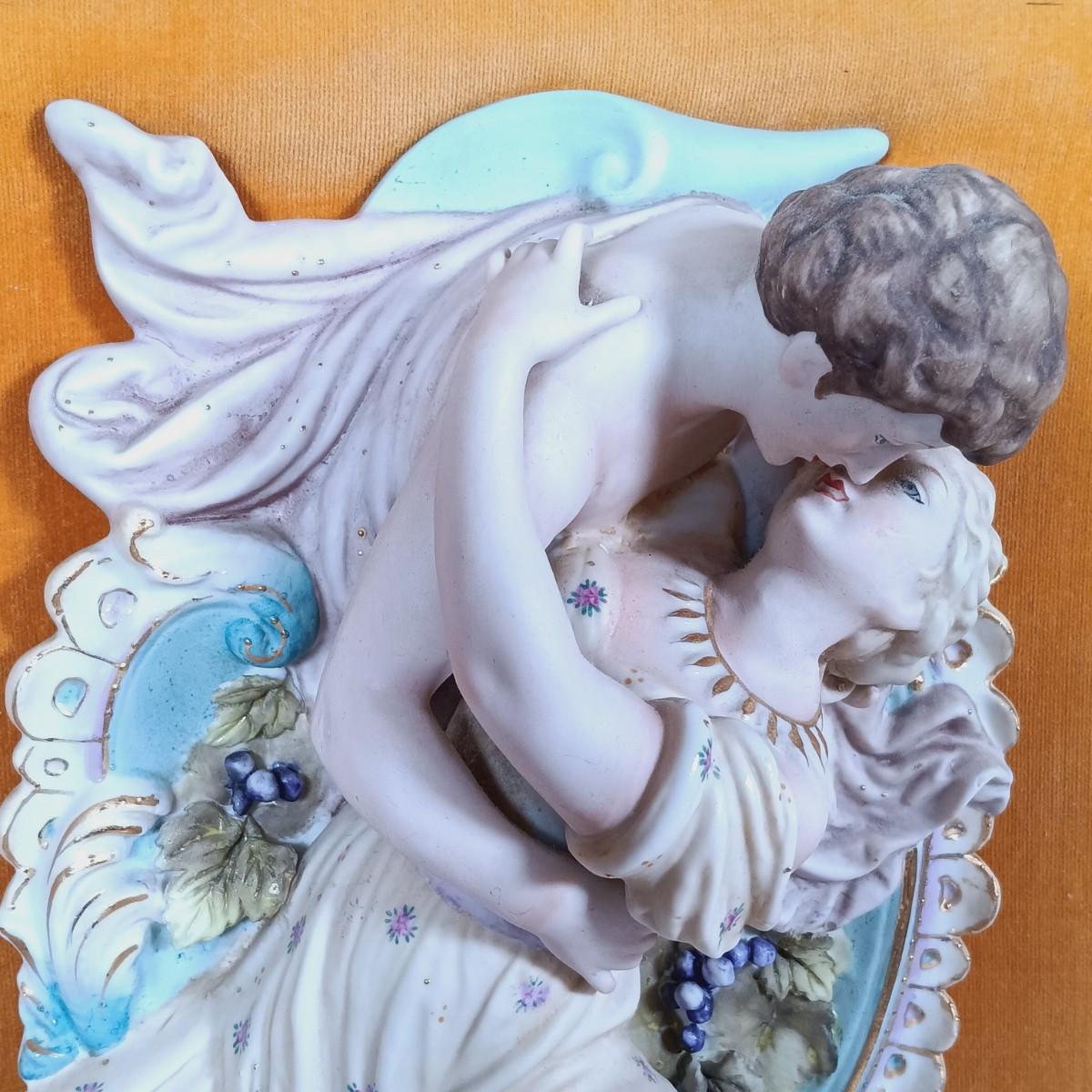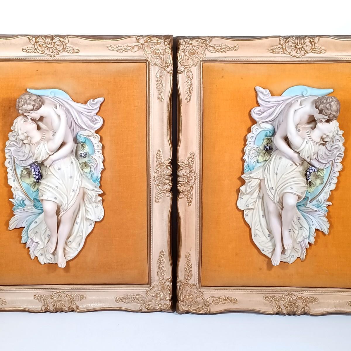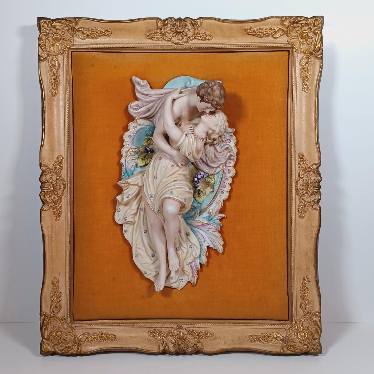 LOT 29: Vintage Porcelain Lovers Reliefs on Framed Velvet Backdrop