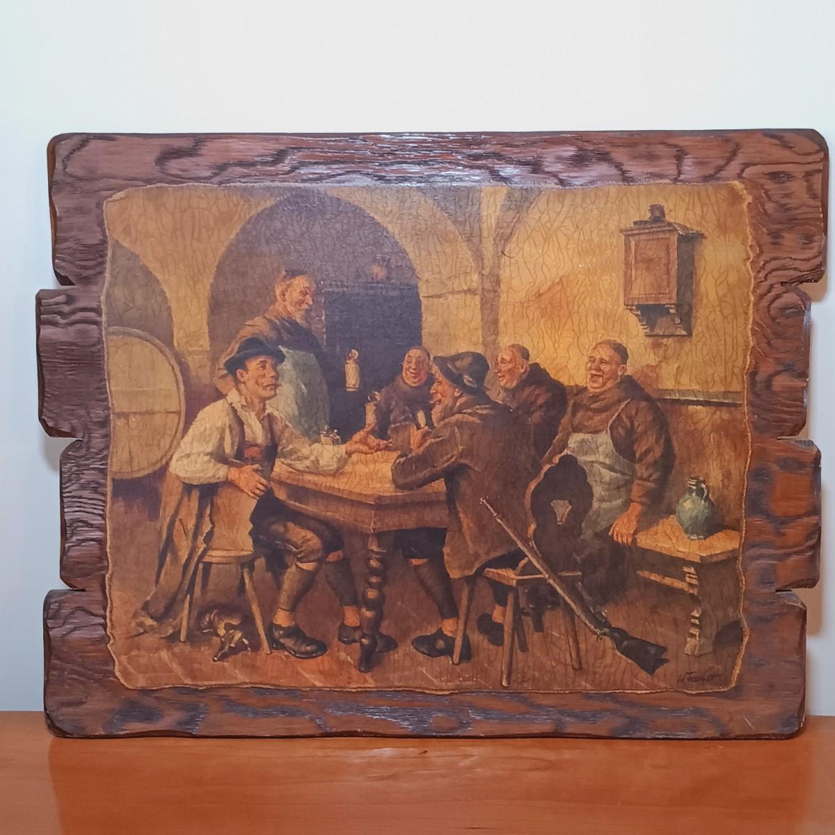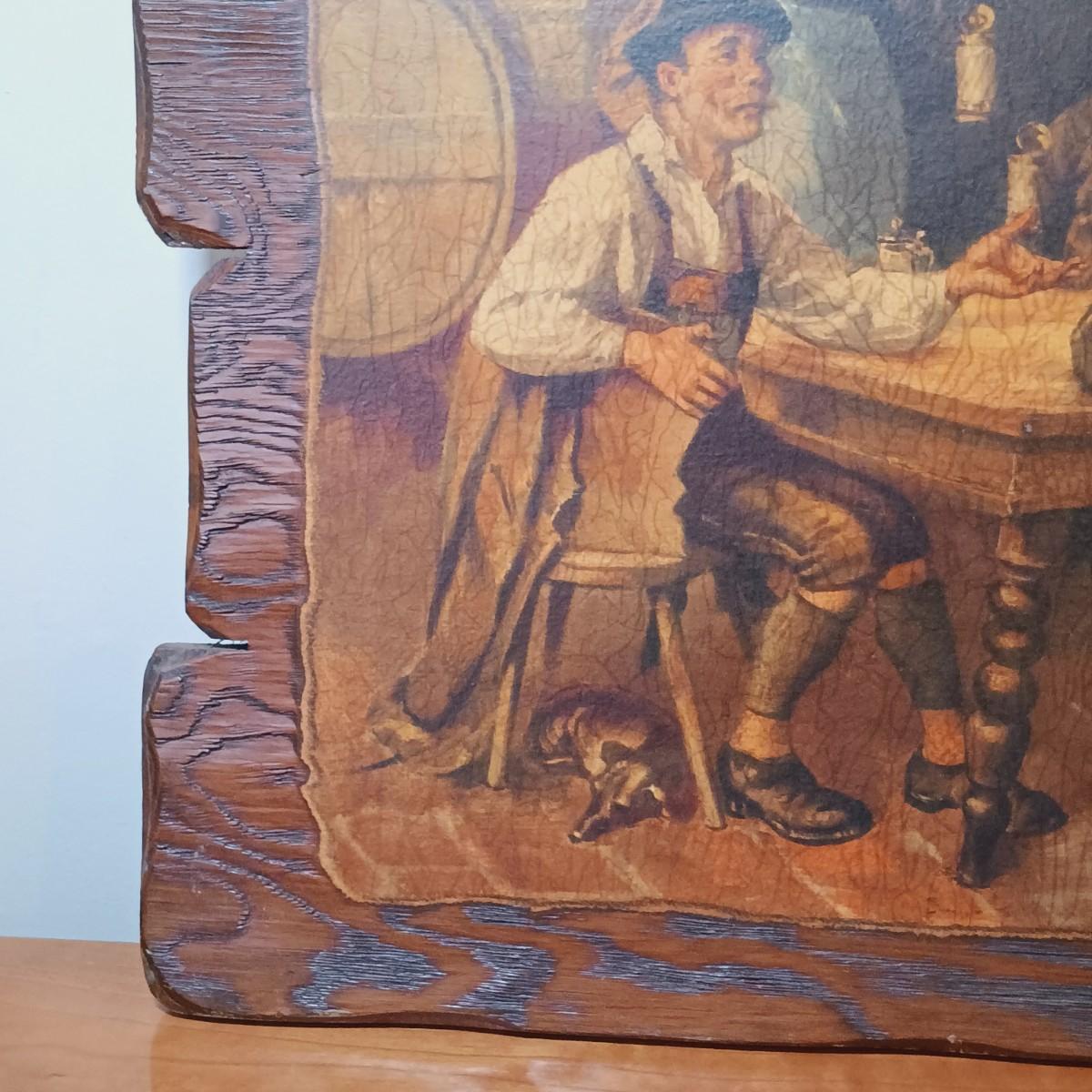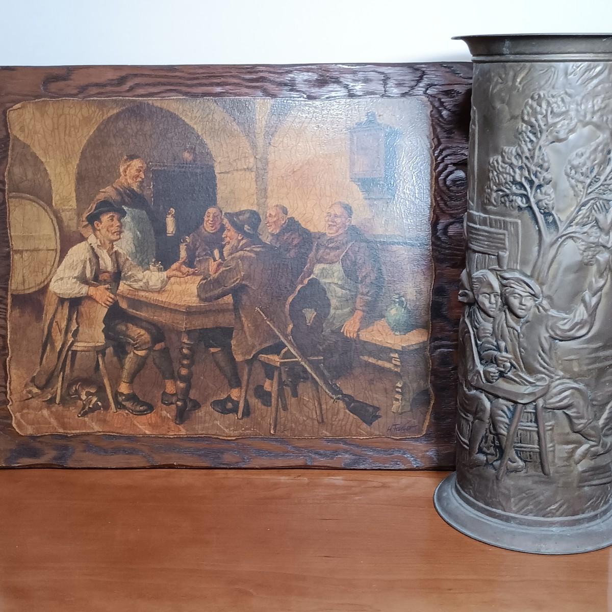 LOT 38: Vintage German Bar Scene Art with Metal Umbrella Stand