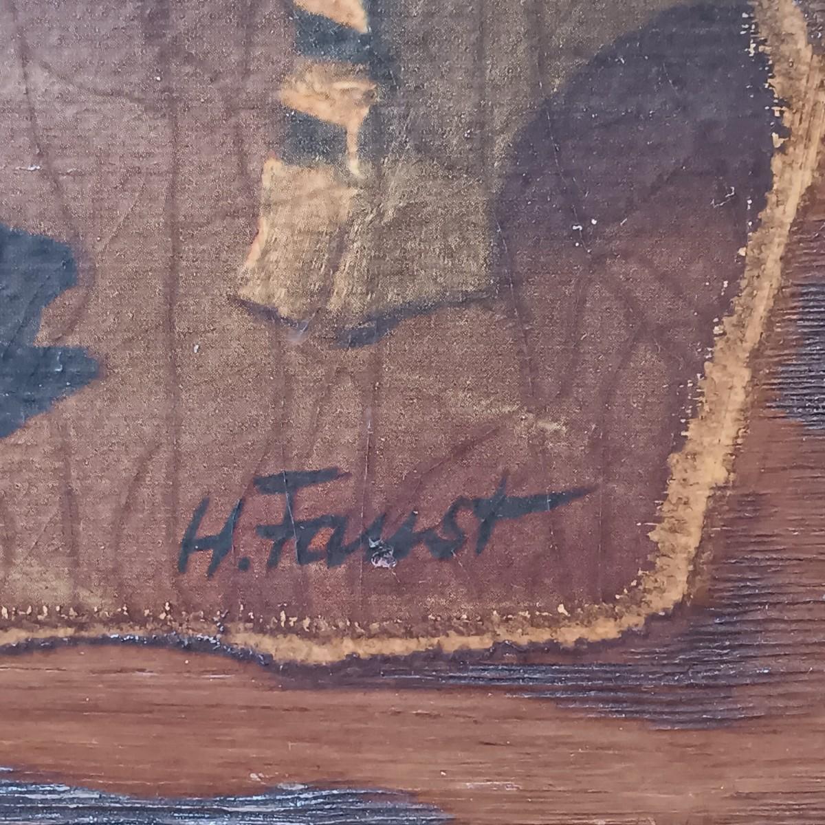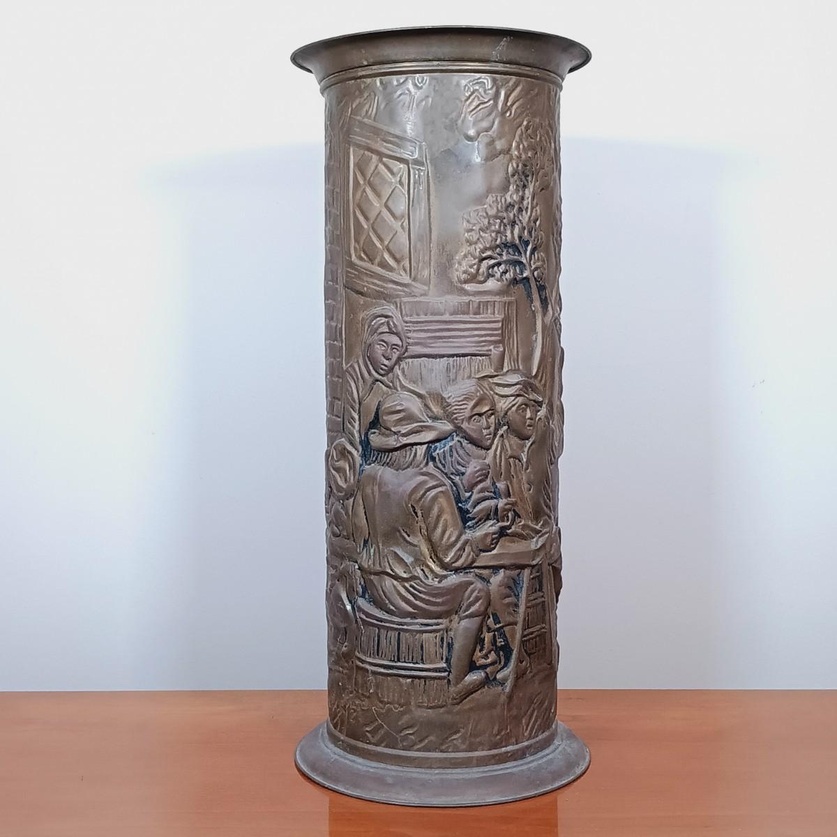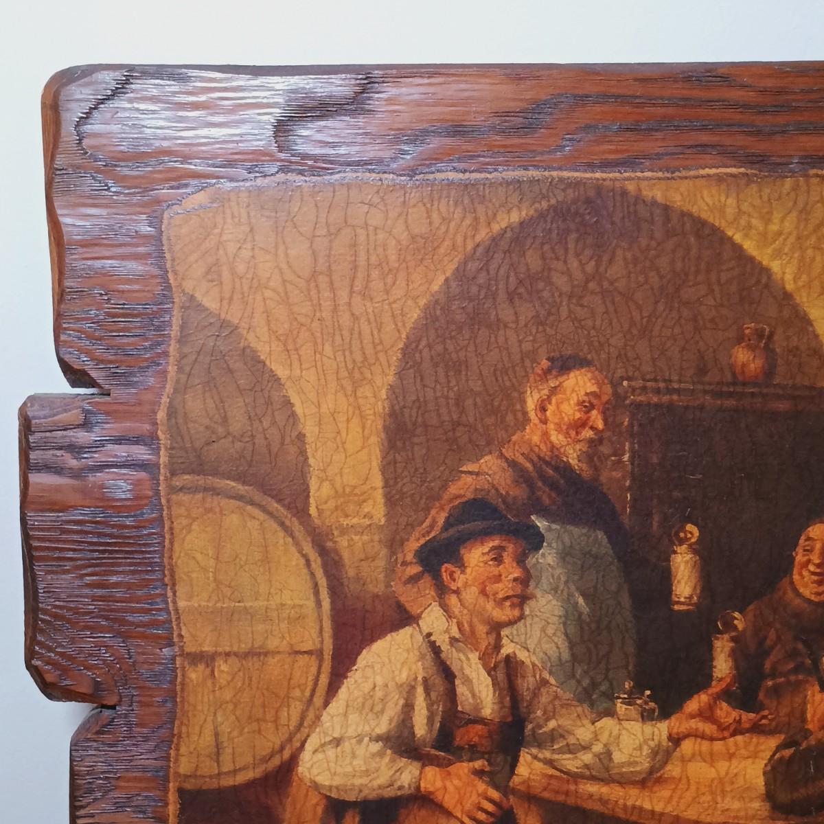 LOT 38: Vintage German Bar Scene Art with Metal Umbrella Stand