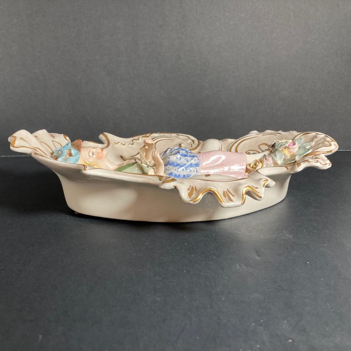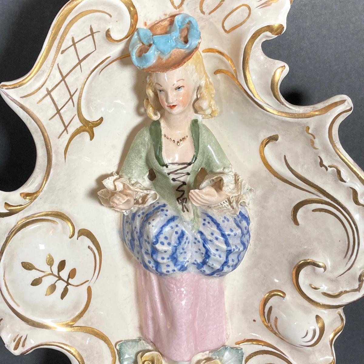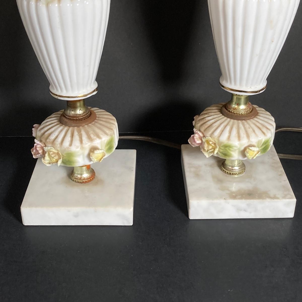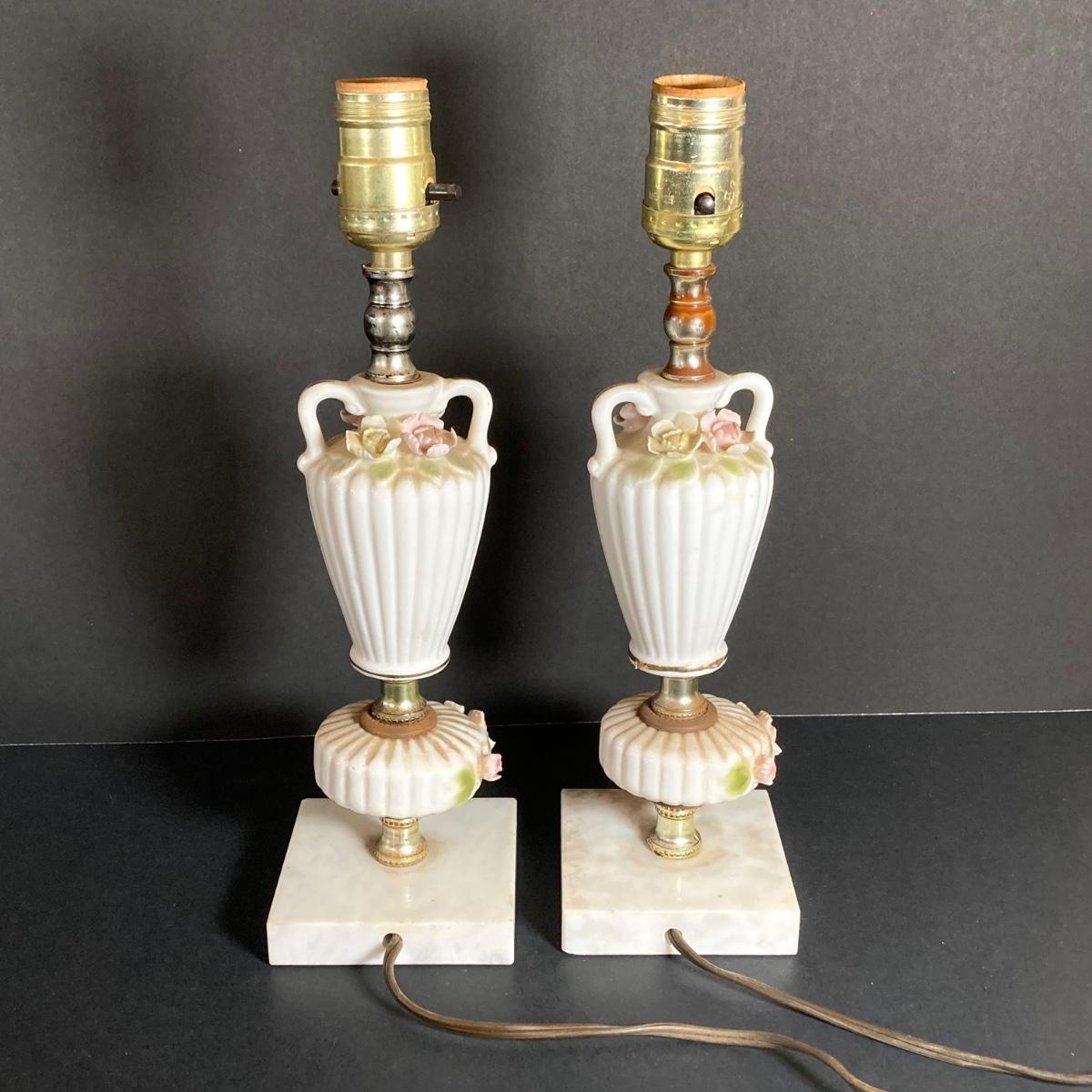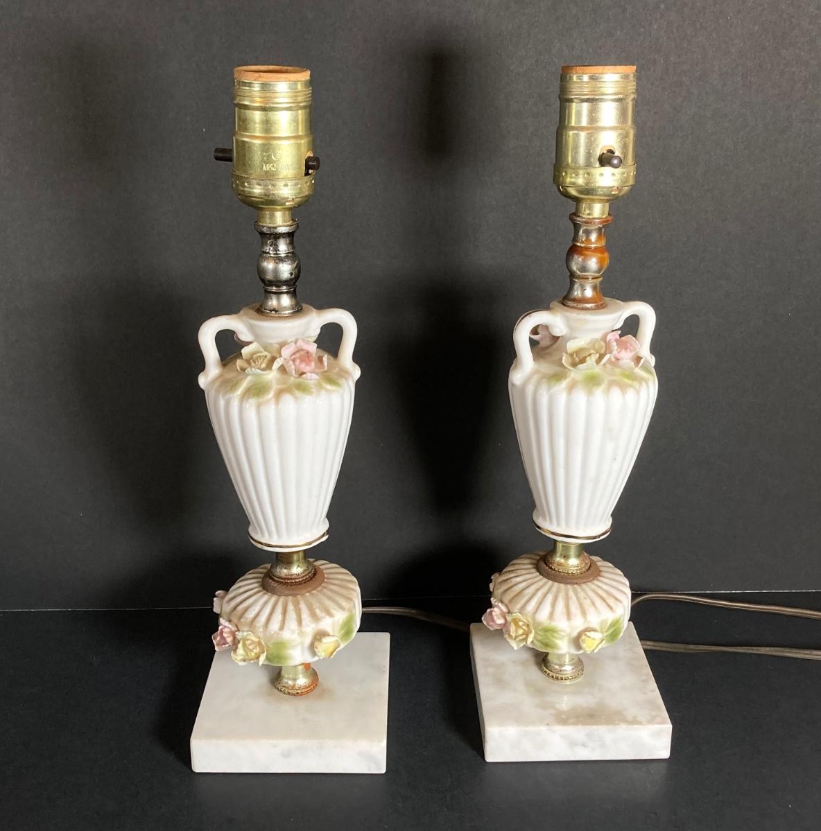 LOT 72: Vintage Porcelain Wall Plaque with Pair of White Ribbed Capodimonte Style Table Lamps