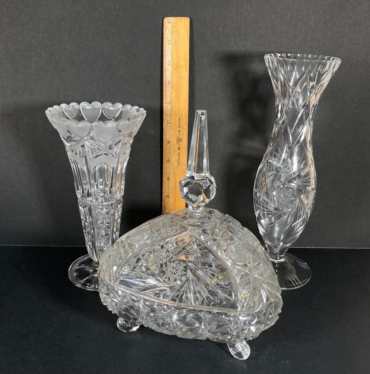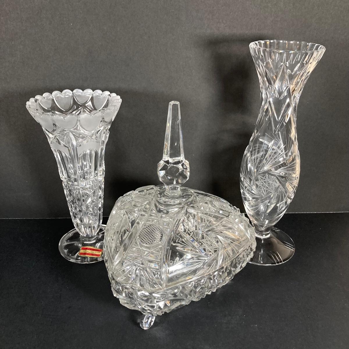 LOT 75: Beautiful Crystal Collection - L.E. Stelle Crystal Candy Dish, Price Imports Bleikristall Vase and More