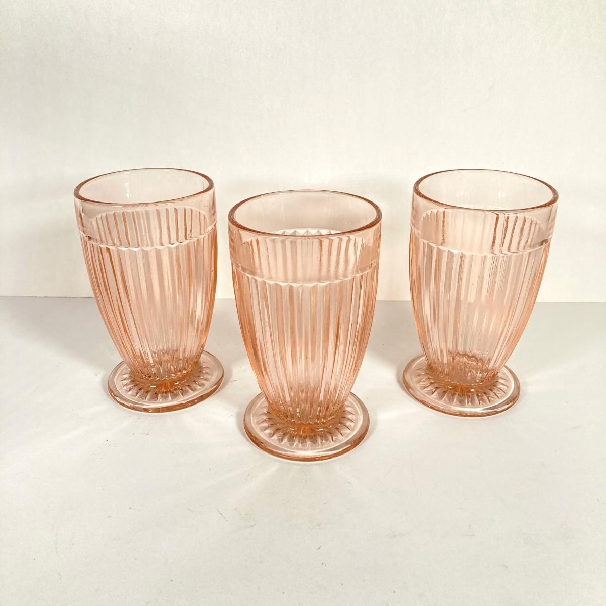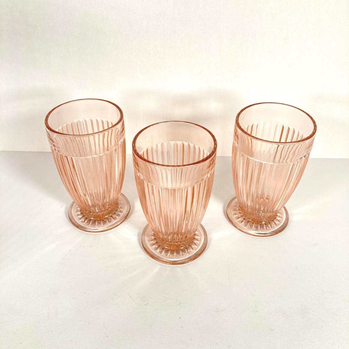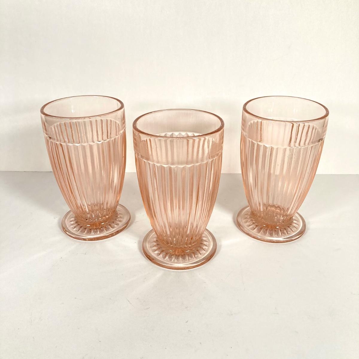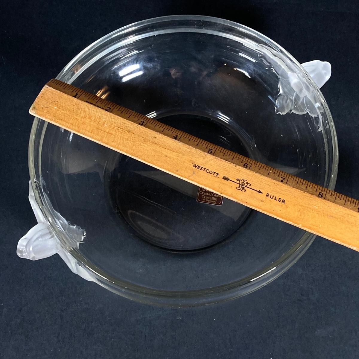 LOT 76: Vintage Glass Collection - Pink Ribbed Goblets, Frosted Walther Crystal Glas Bowl, Pitcher, Bud Vase and Butter Dish with Cloche