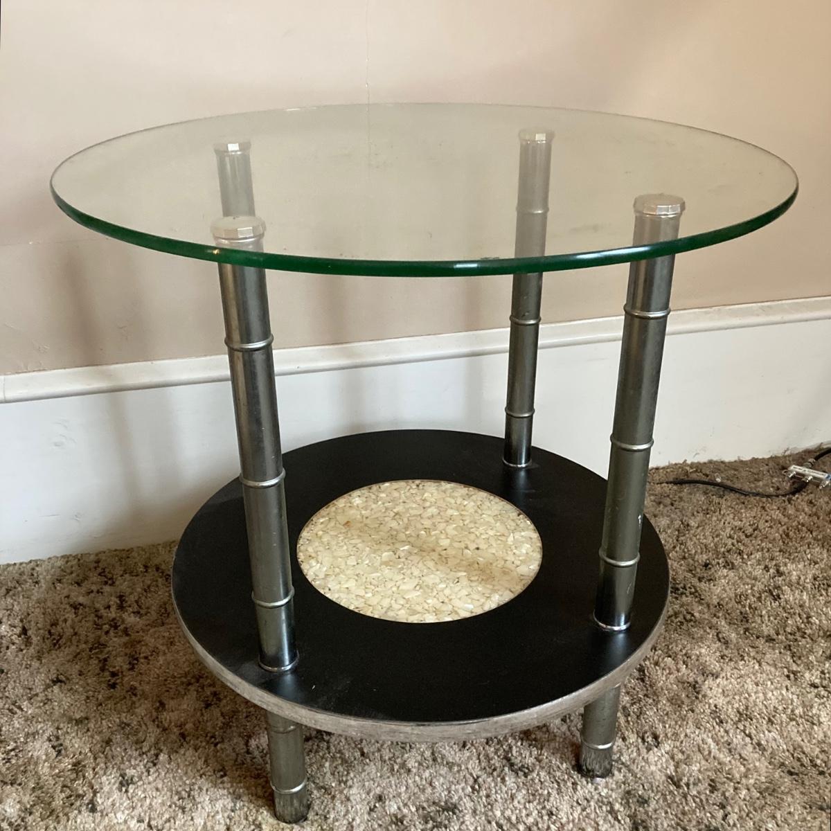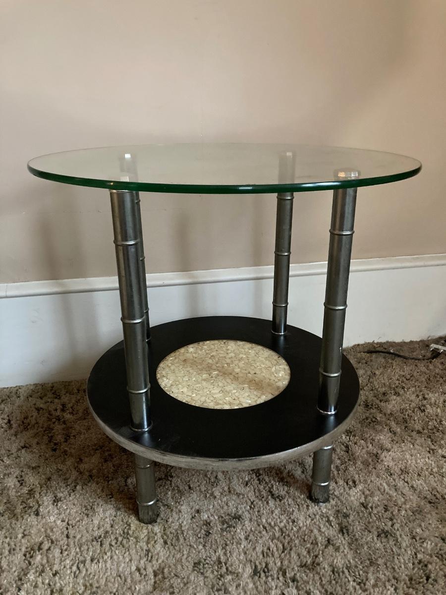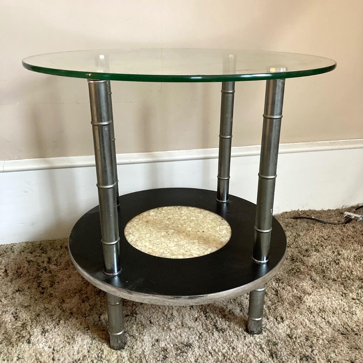 LOT 77: Vintage Modern / Contemporary Glass Top Two Tier Accent Table