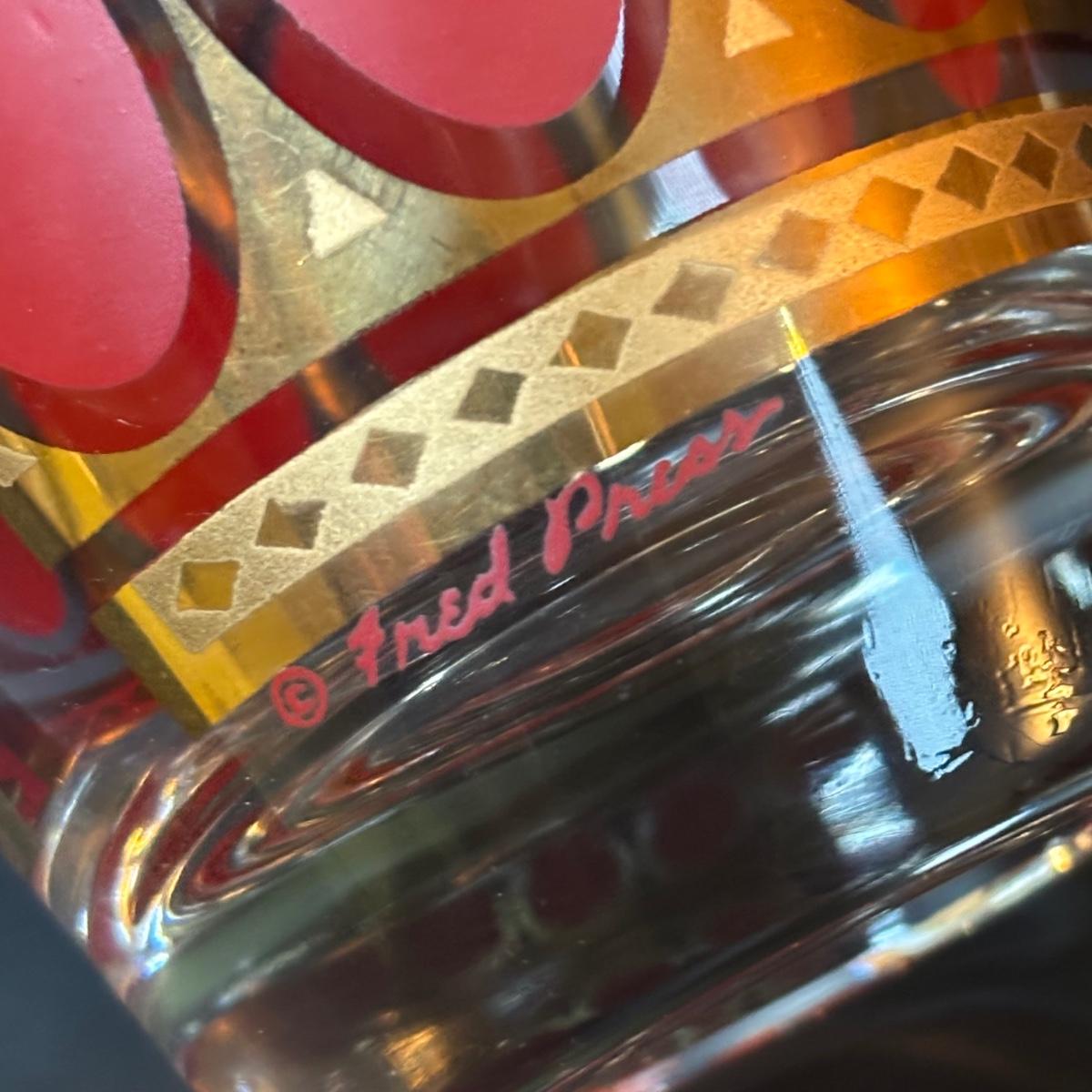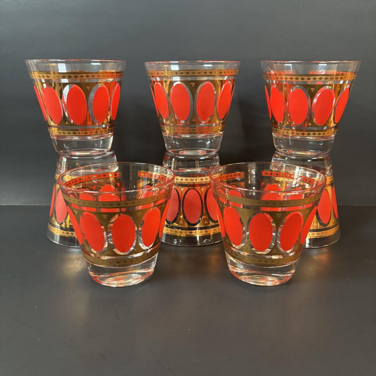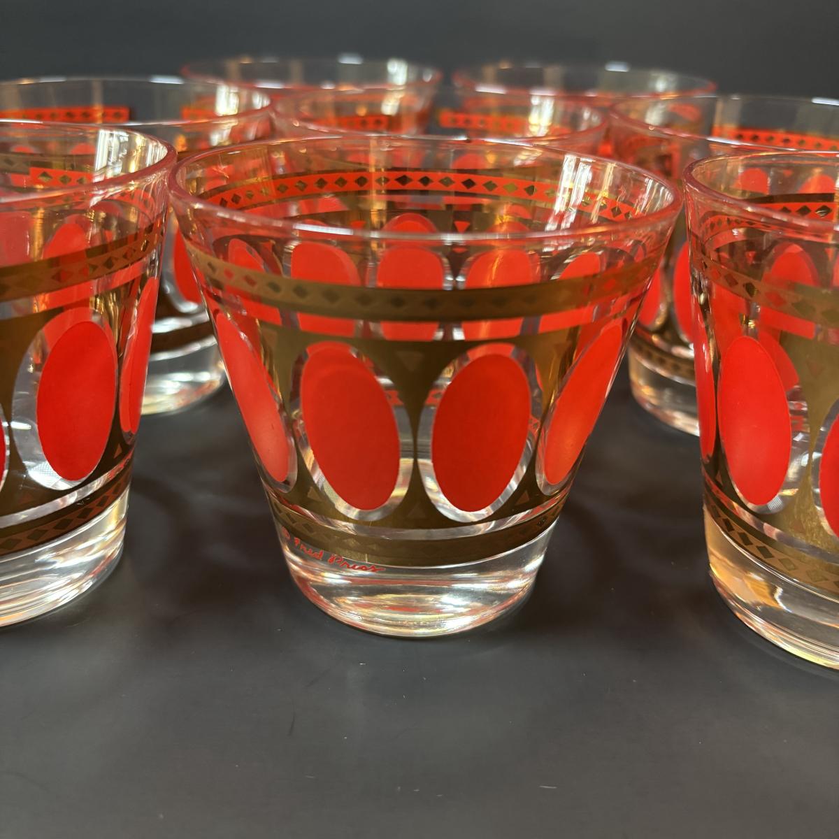 LOT 83: Vintage MCM Fred Press Red Oval & 24K Gold 3" Barware Glasses