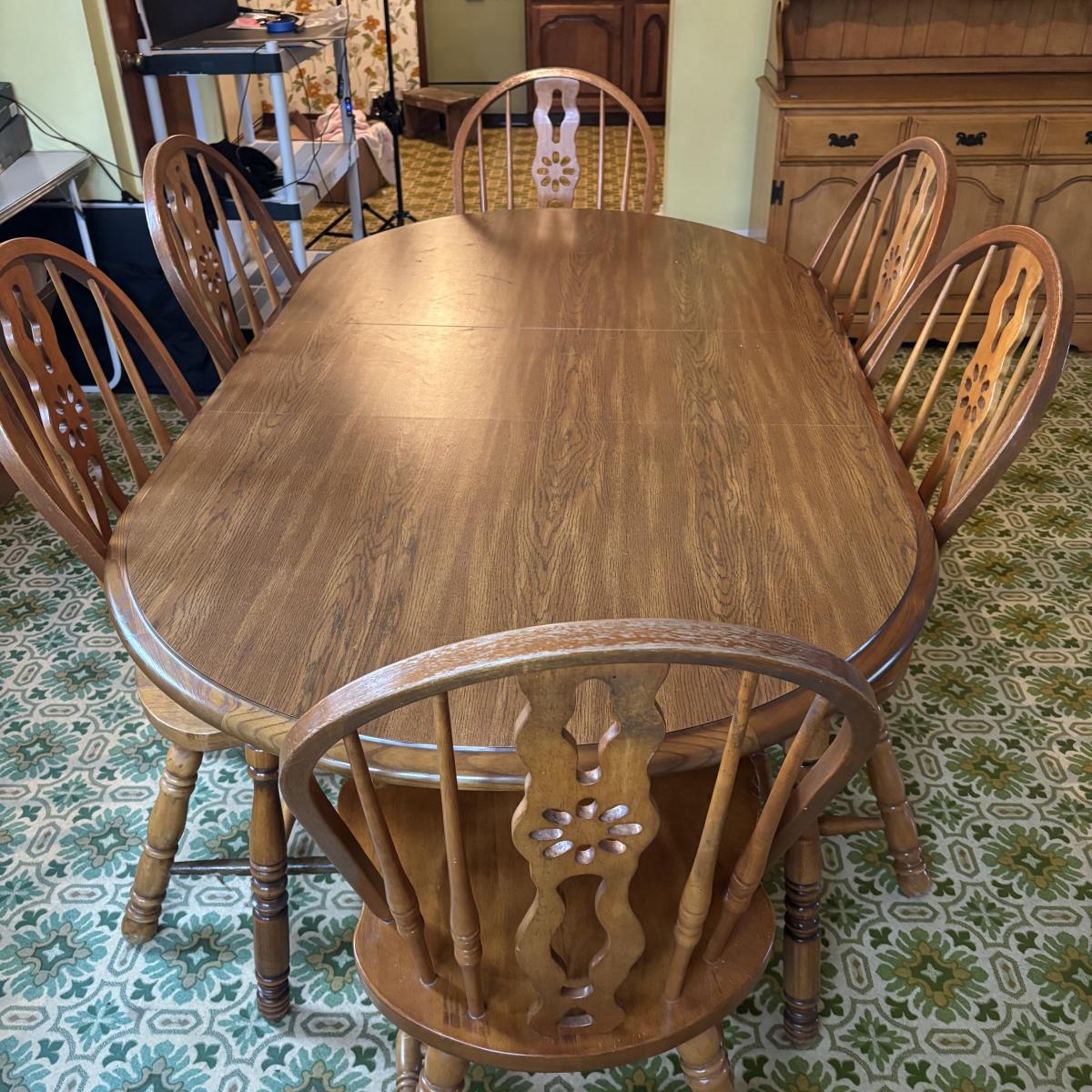 LOT 100: Classic Dinning Table w/6 Oak Chairs