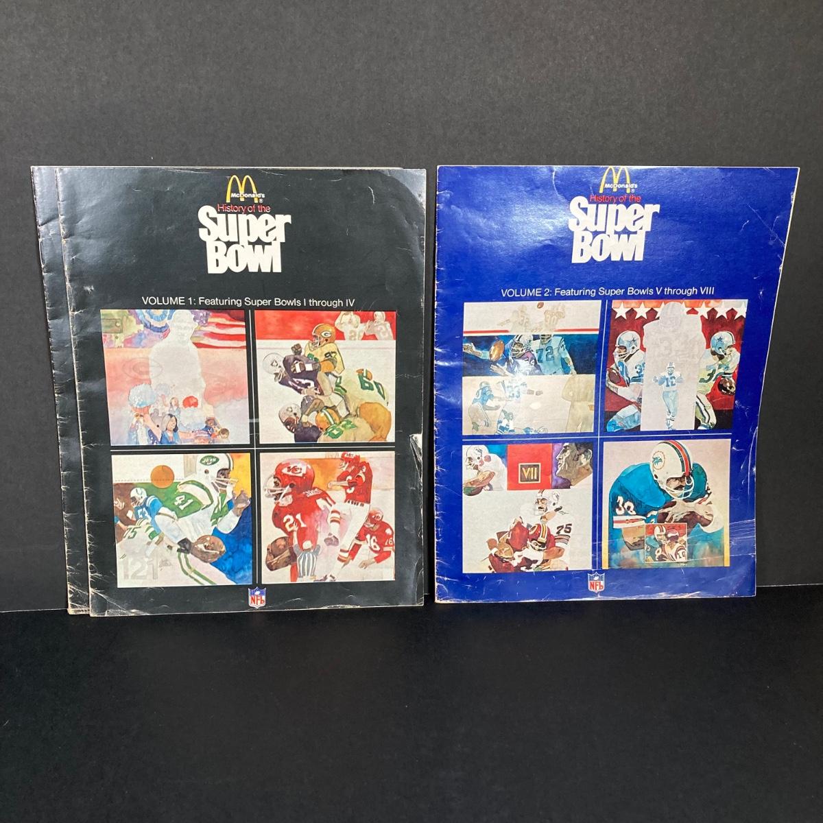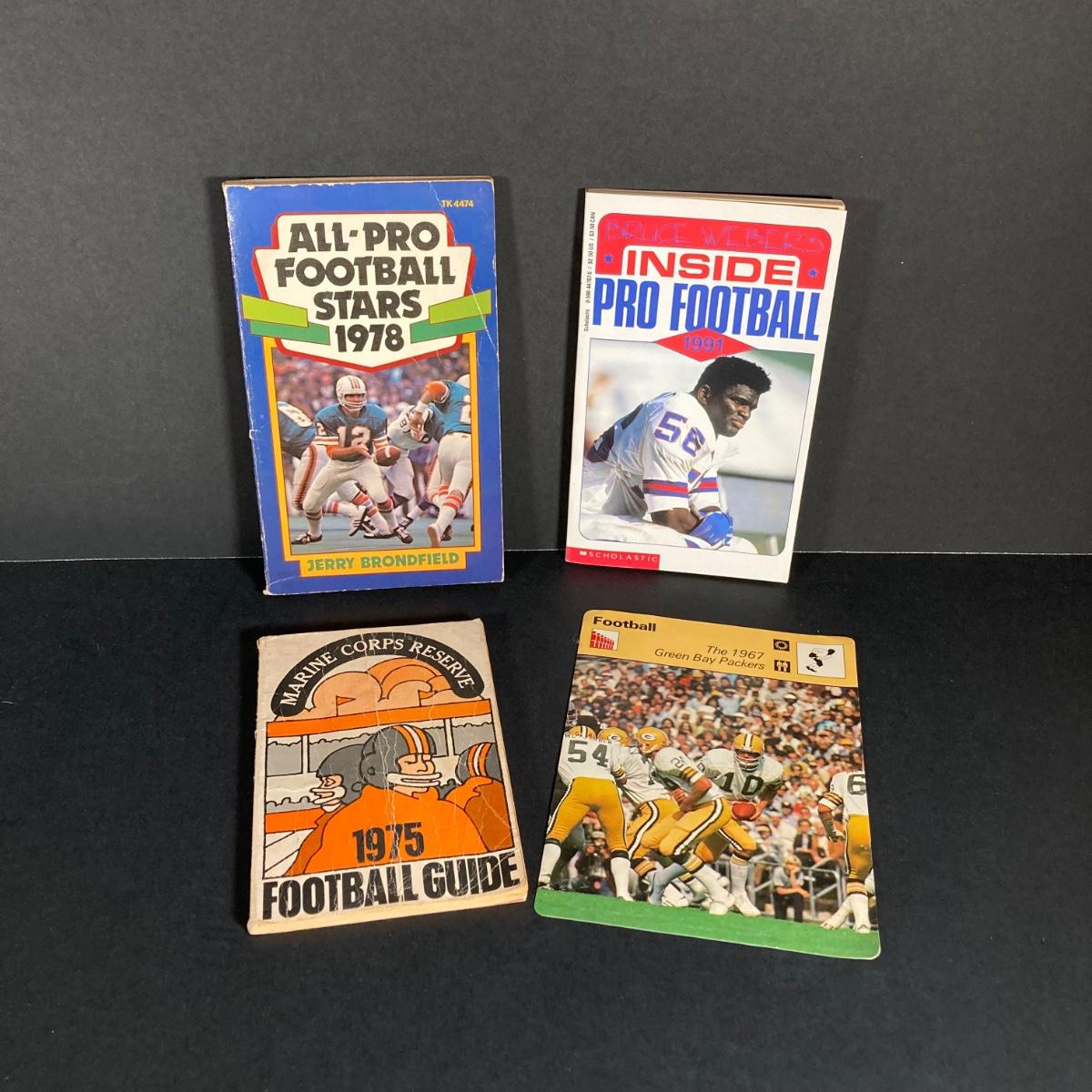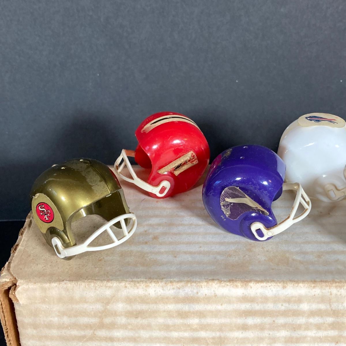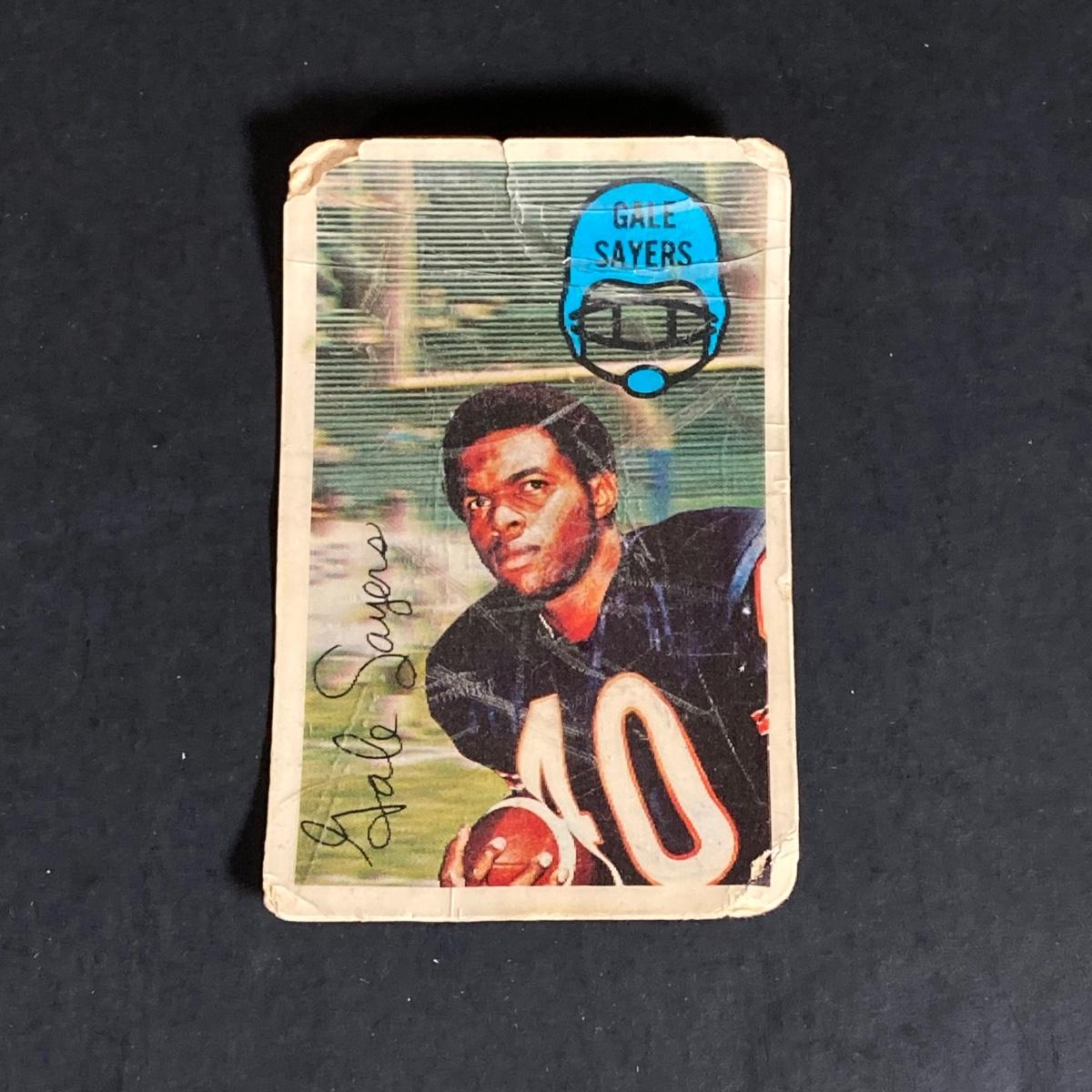 LOT 114: Vintage Collection of NFL Sports Memorabilia - Miniature Helmets, Gale Sayers 3D Card, Trading Cards, Super Bowl, Photos,