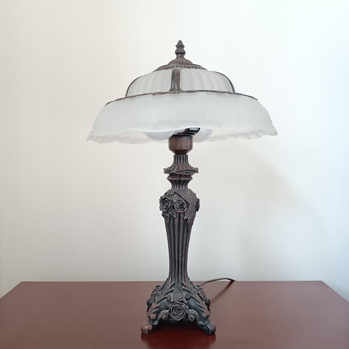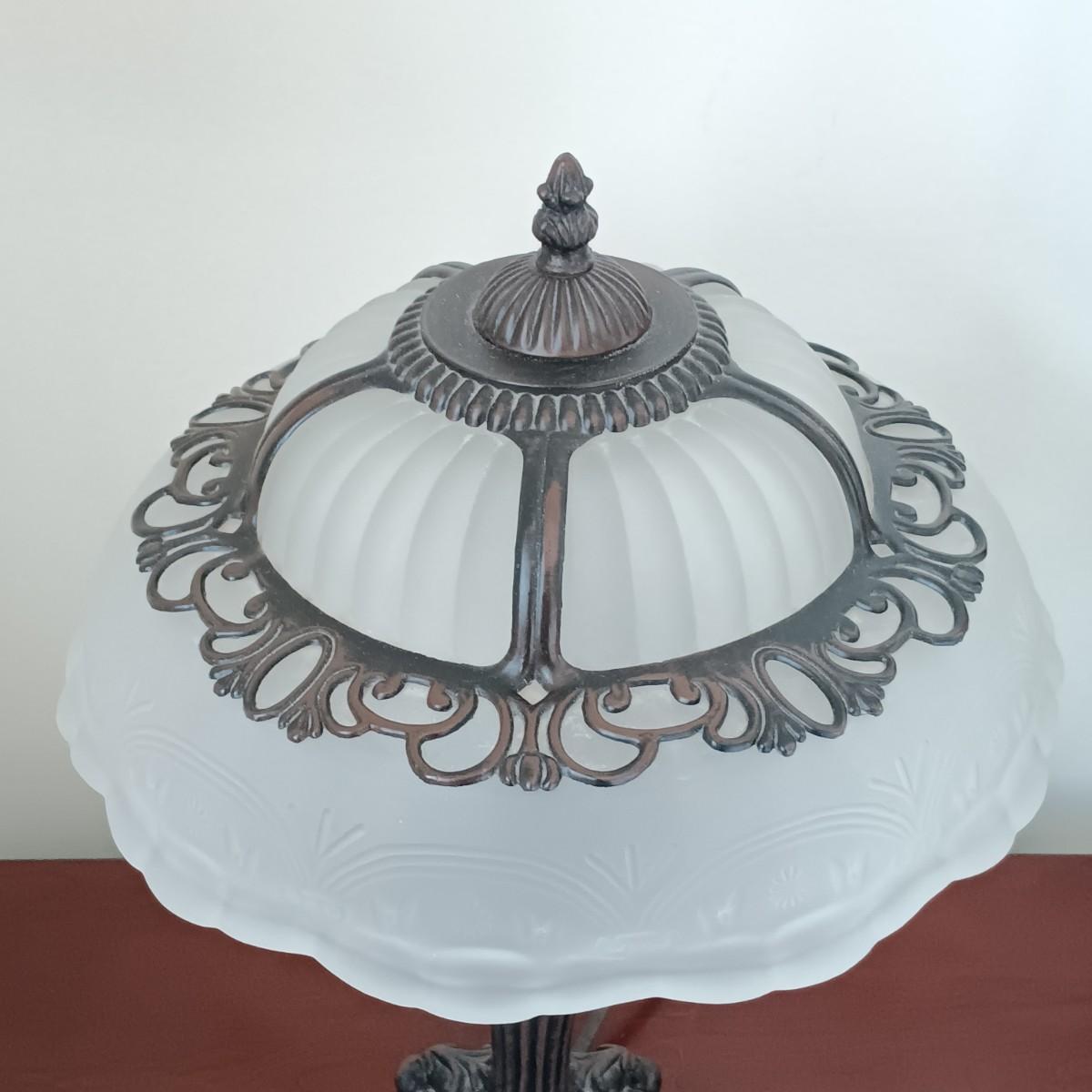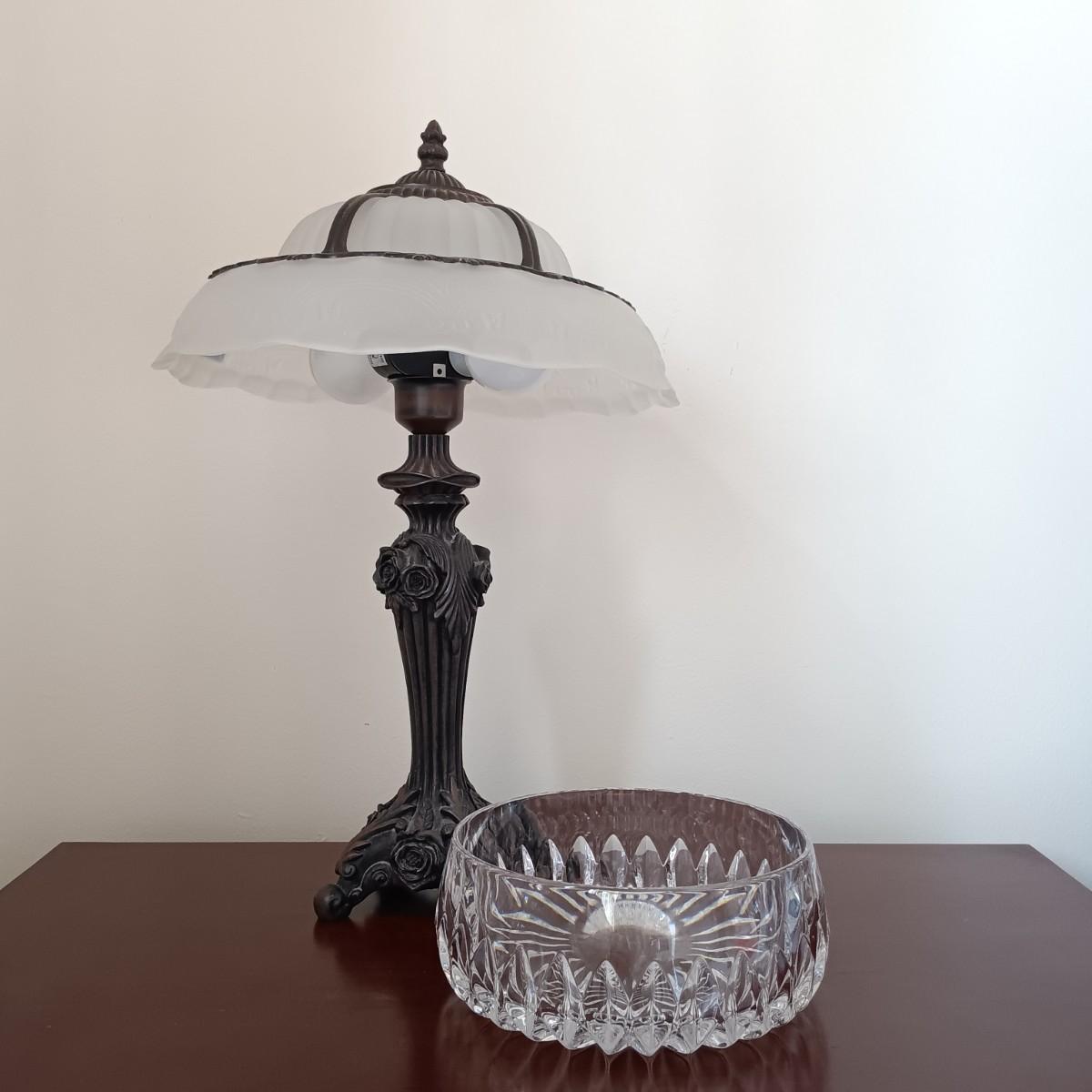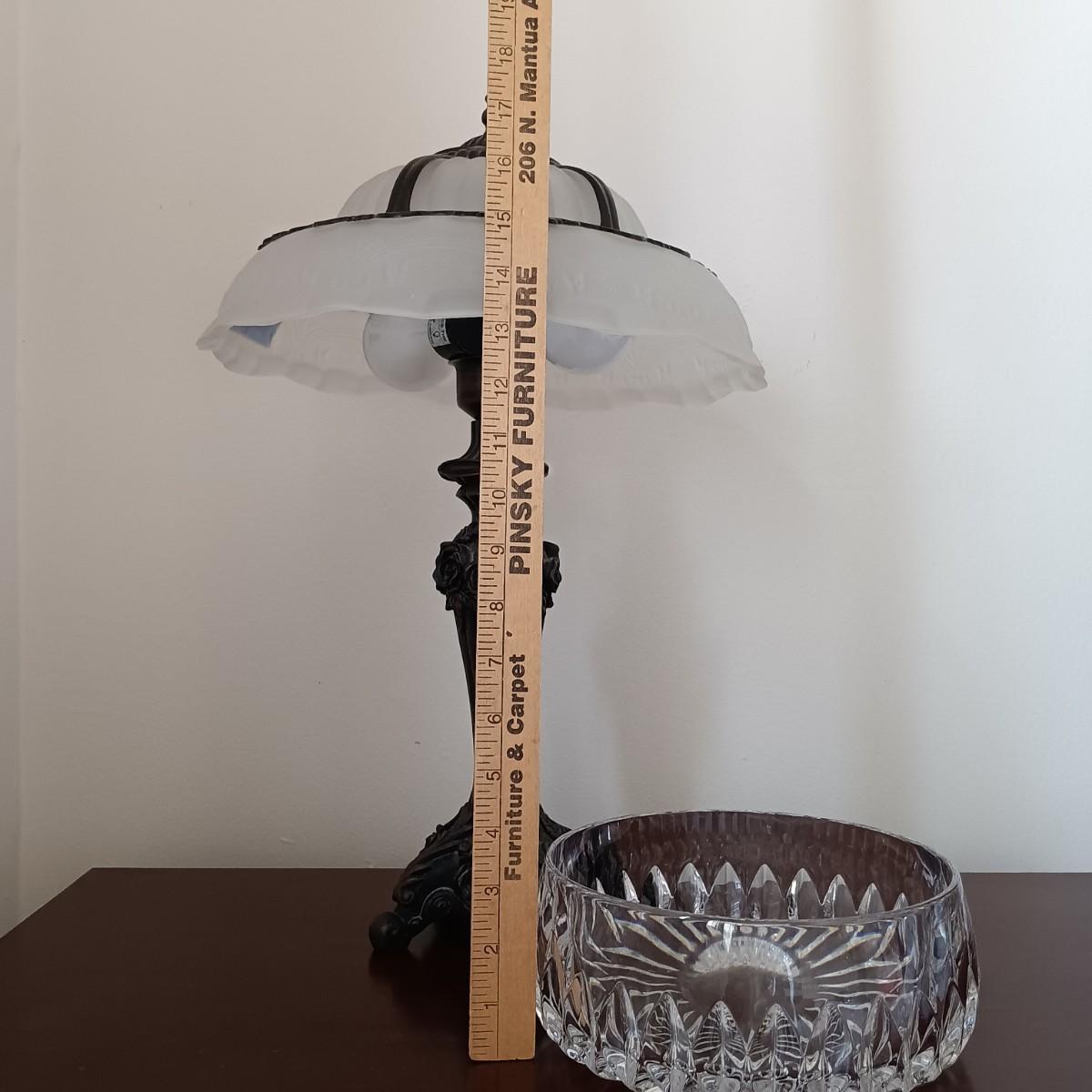 LOT 6: Victorian Style Glass Shade Lamp with Crystal Bowl