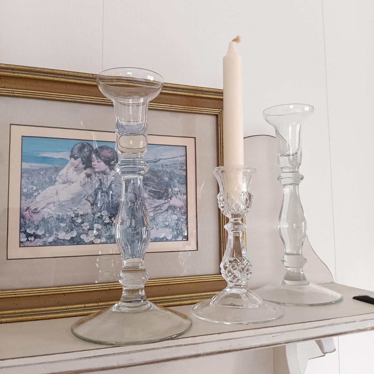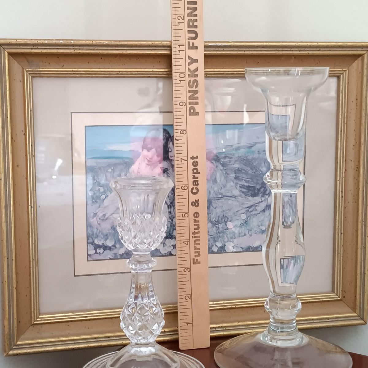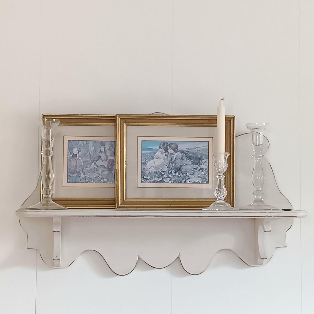 LOT 9: Shelf with Glass Candlestick Holders & Edward Hornel Art Prints