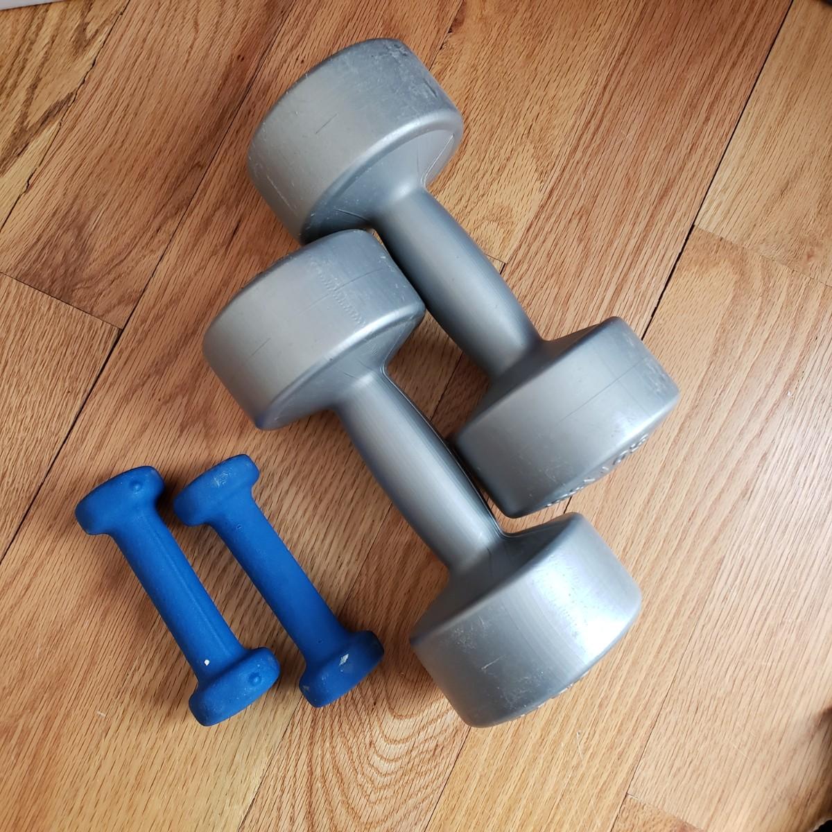 LOT 28: Fitness Equipment-Dumbbells, Exercise Mat, New Massage Pillow & More