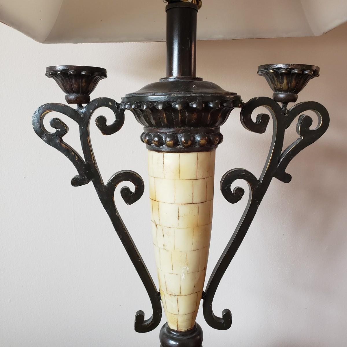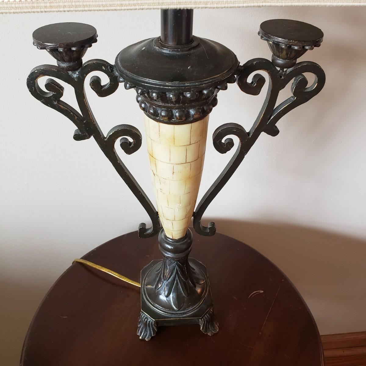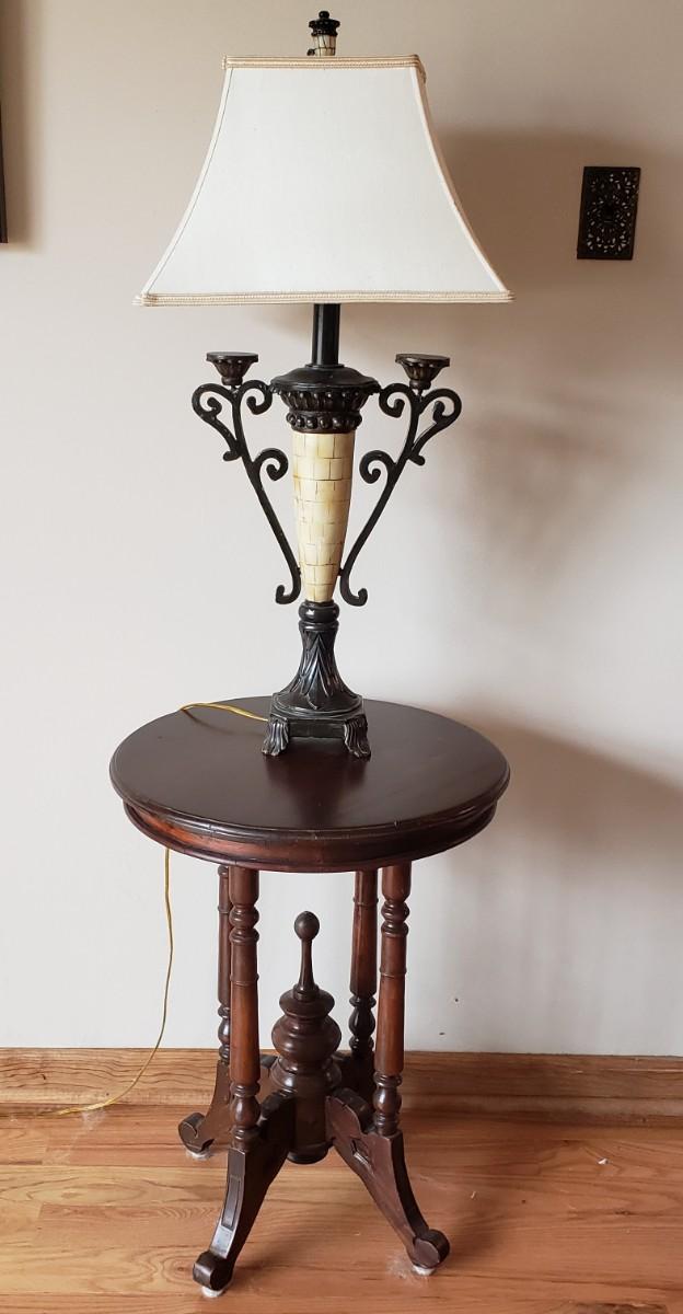 LOT 38: Victorian Style Oval Top Table with Decorative Table Lamp