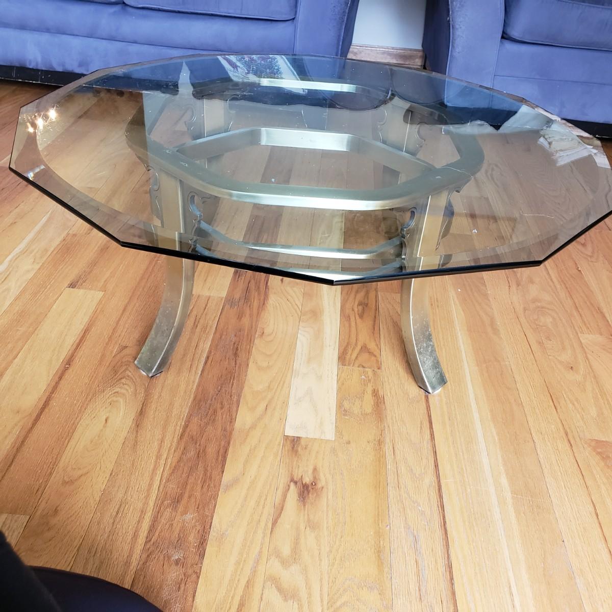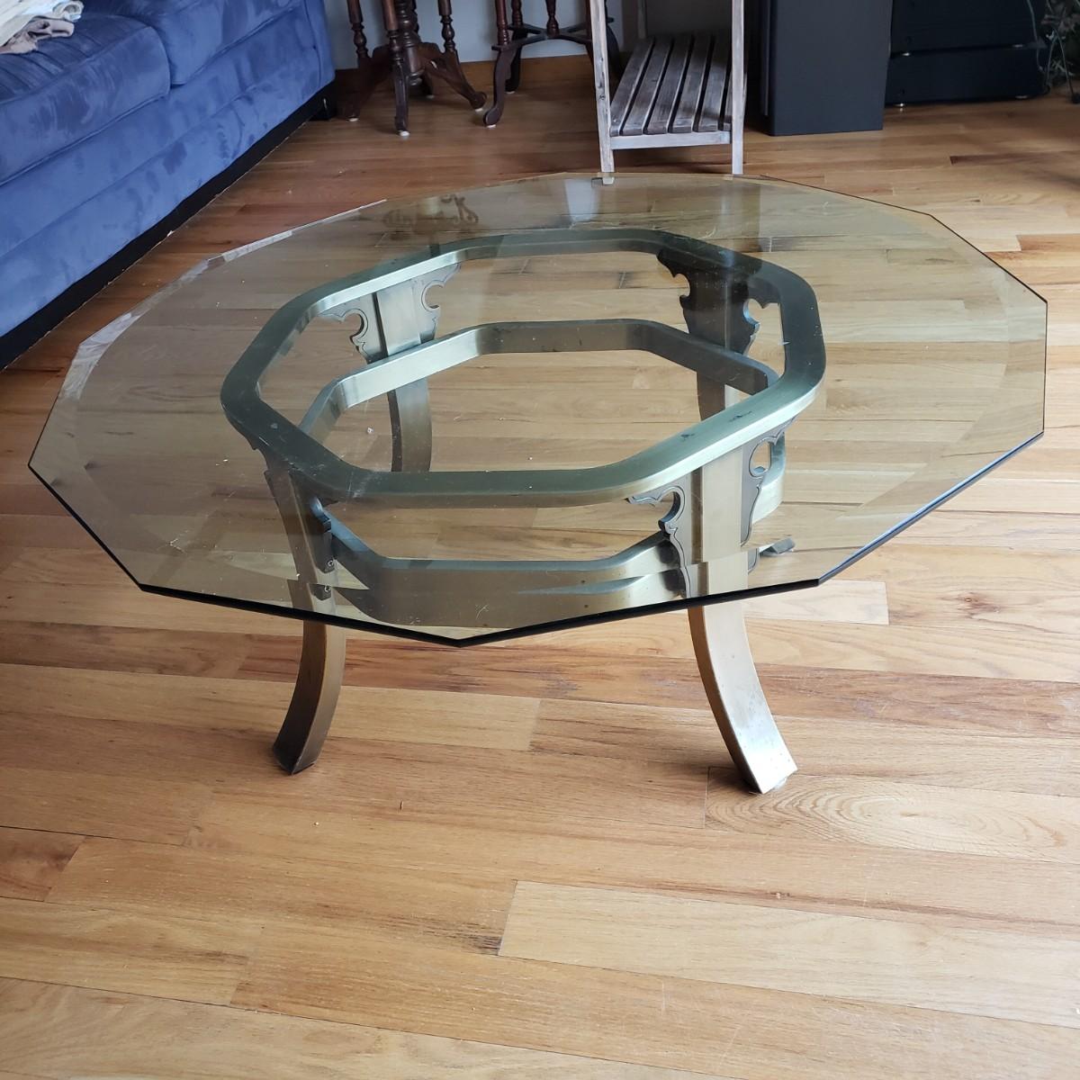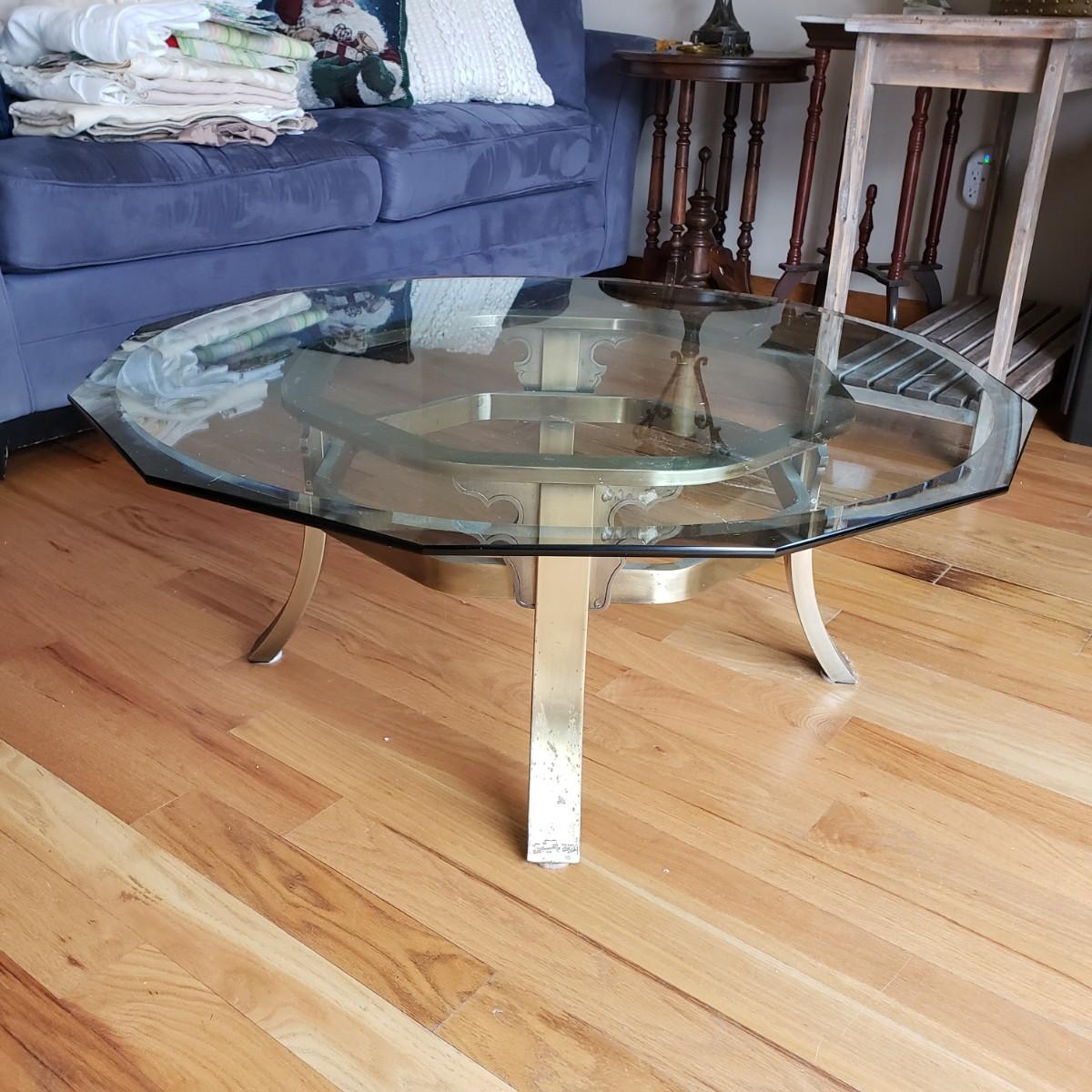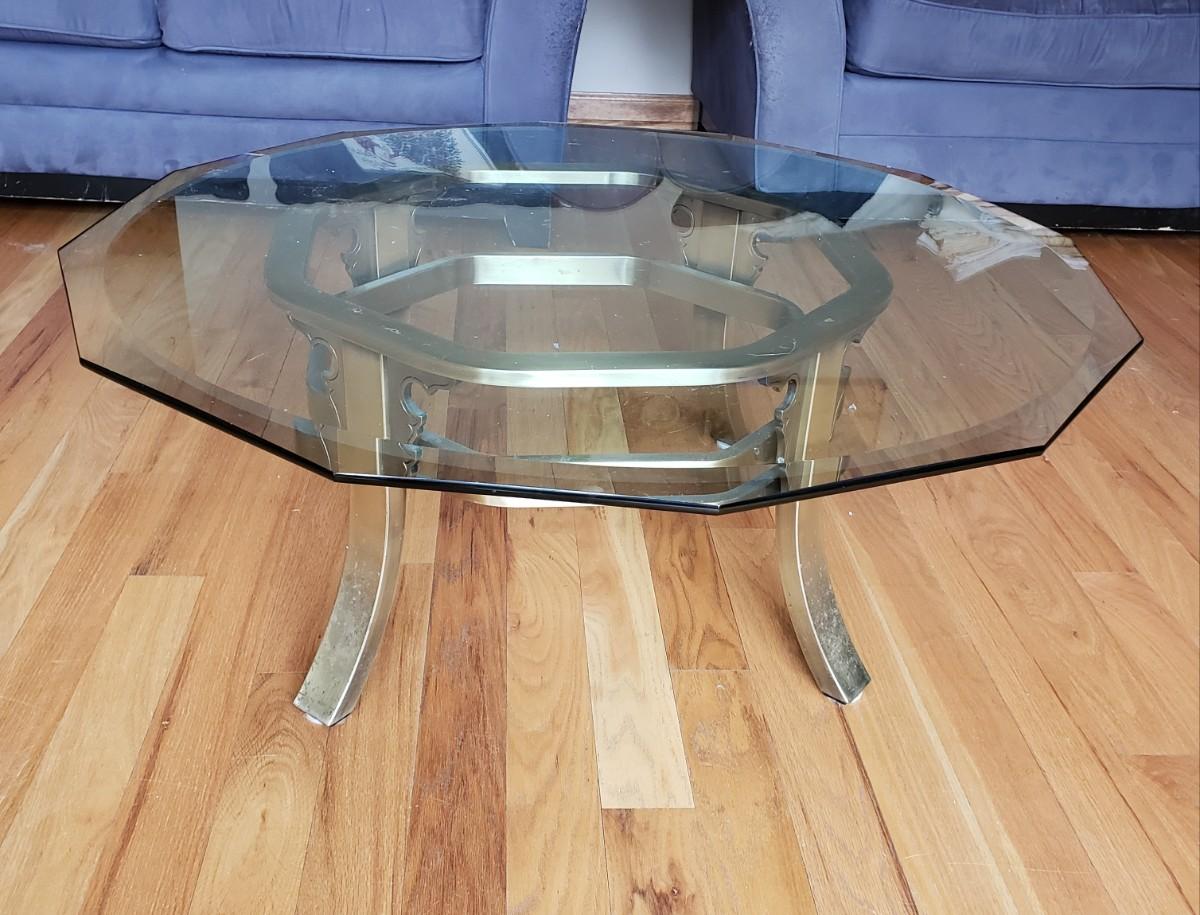 LOT 41: Mid Century Brass Glass Top Coffee Table