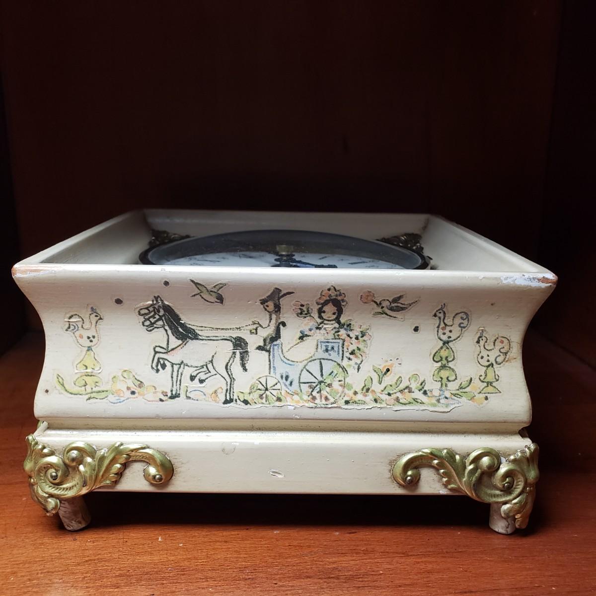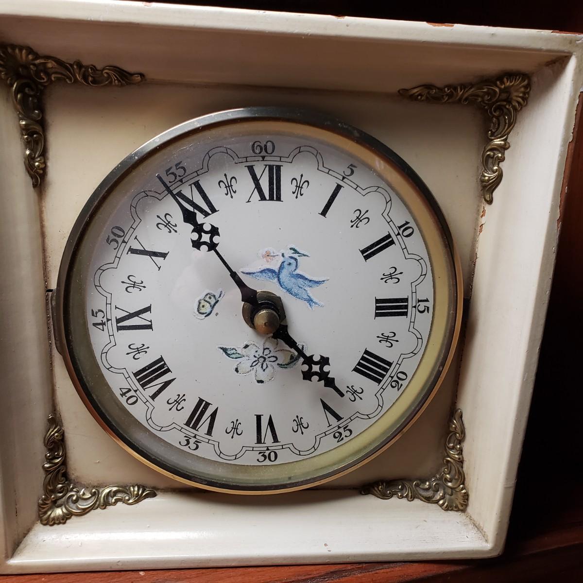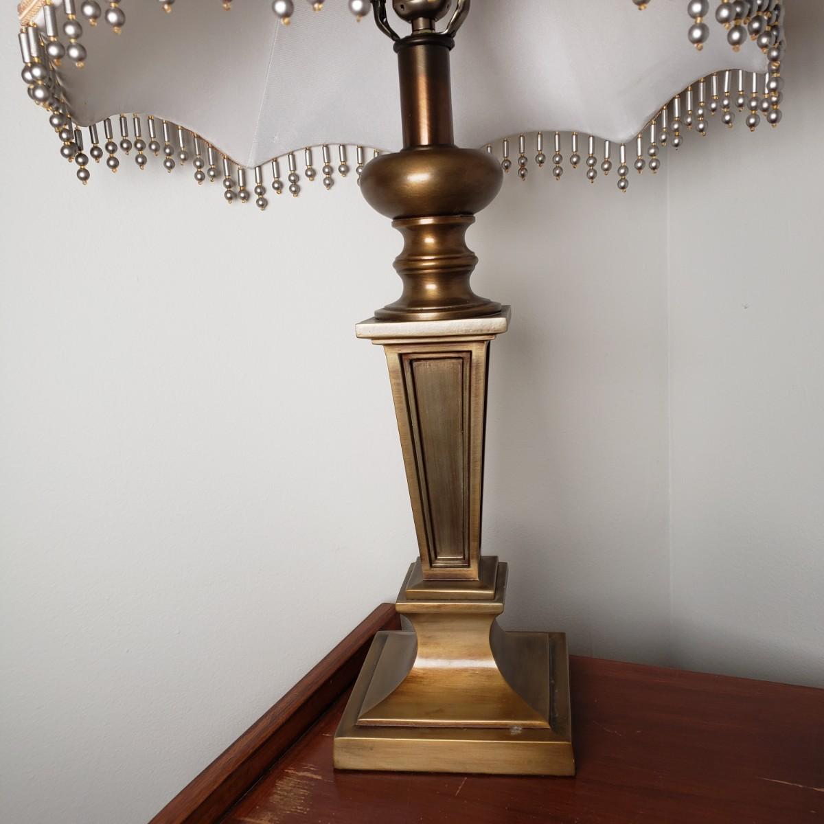 LOT 53: Brass Table Lamp with Beaded Shade, Custom Made Decoupage Clock & Side Table