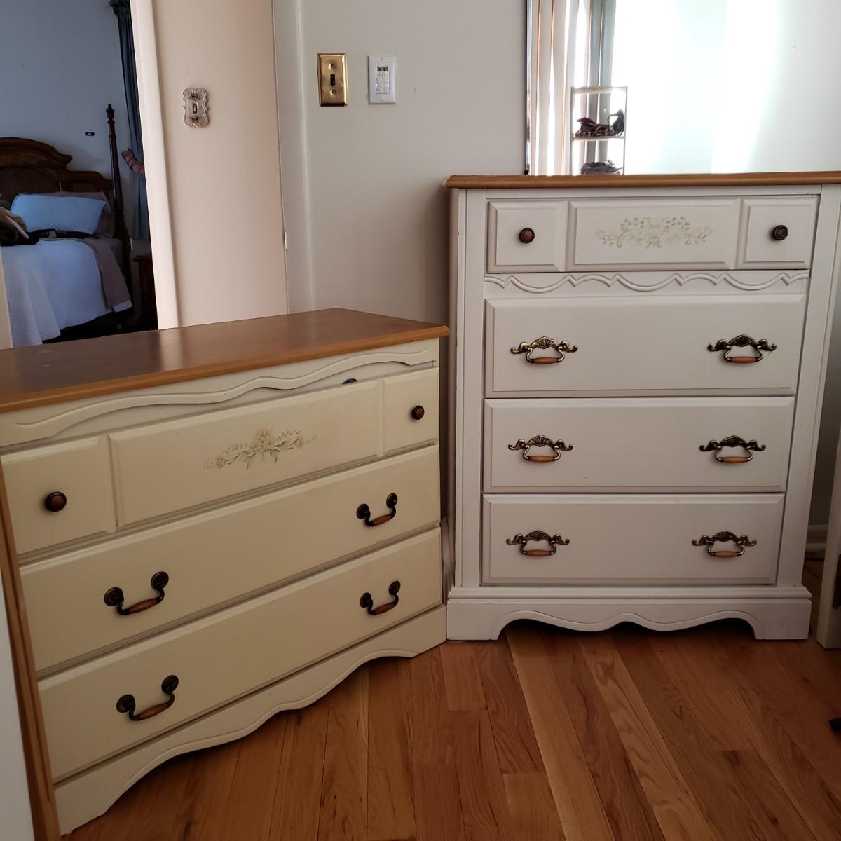 LOT 54: Pair of Wood Top Dressers with Floral Details