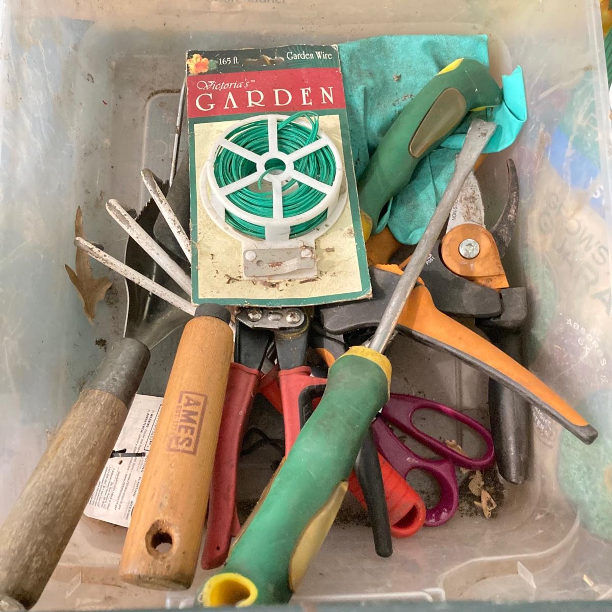LOT 63: Garden Collection - Miracle Grow Garden Soil, Potting Mix, Tools, Gloves, Bench and More