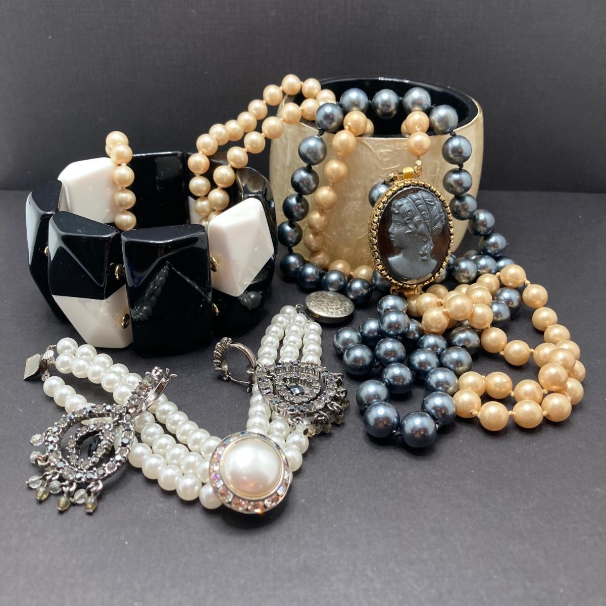 LOT 75: Collection of Vintage Jewelry - Cameo Brooch / Necklace, Bracelets and Earrings
