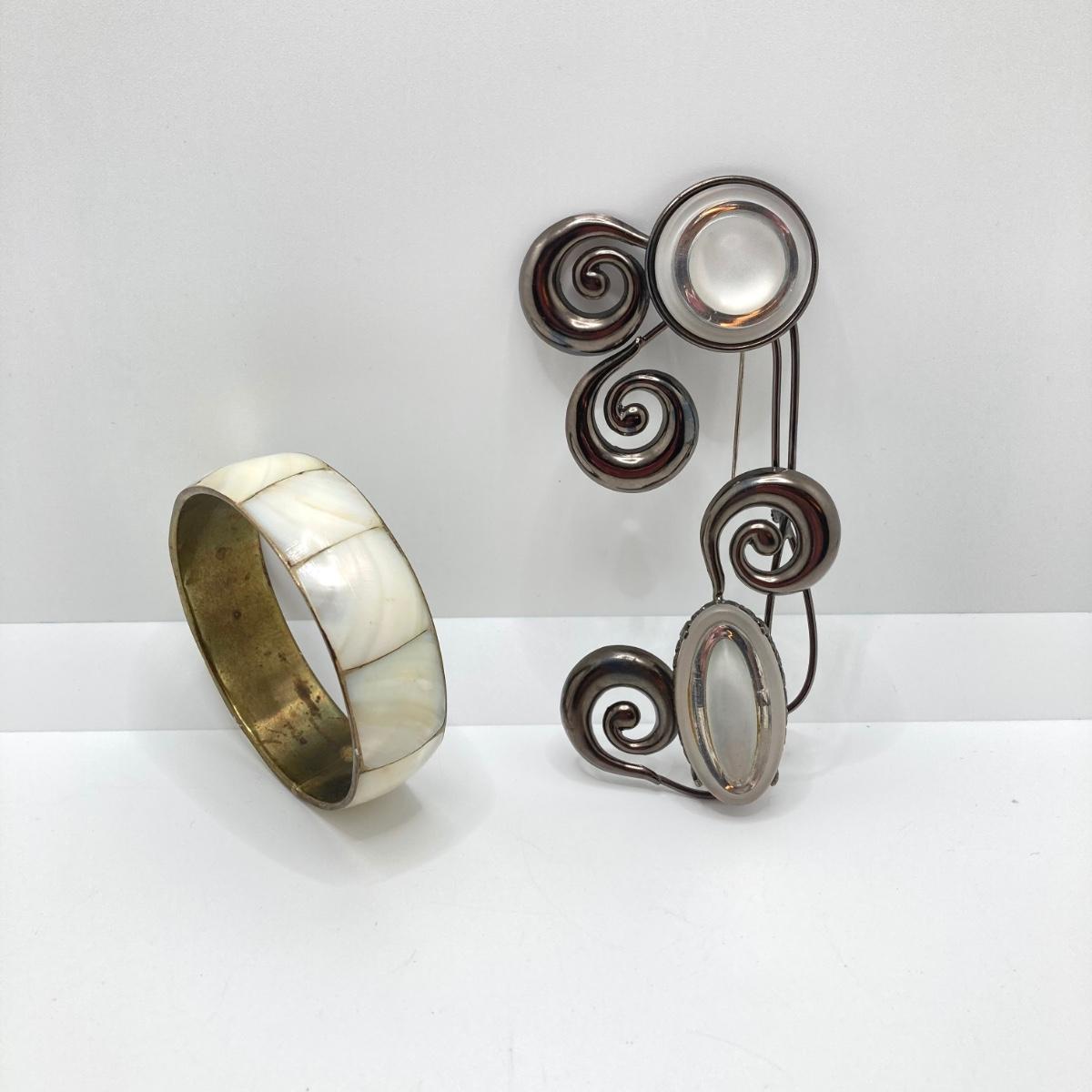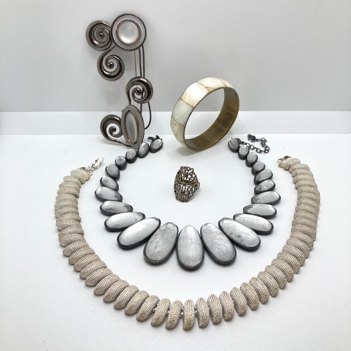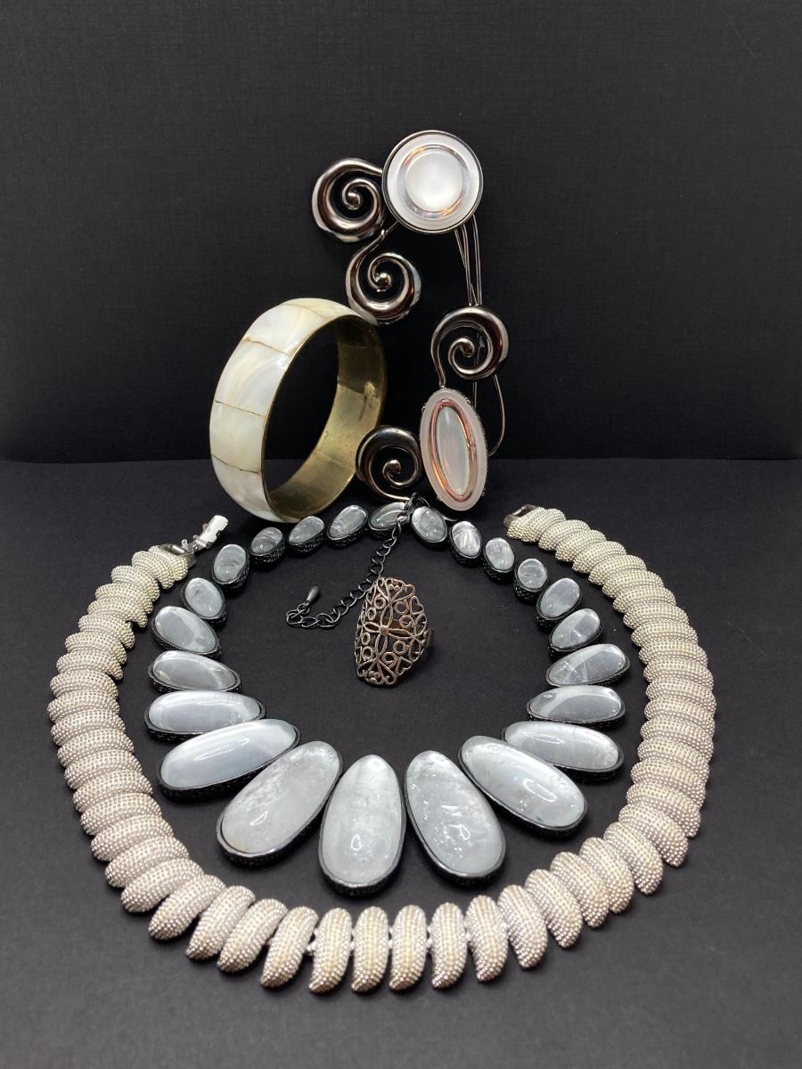LOT 76: Gorgeous Vintage Jewelry - Necklaces (Kiam Family), Mother of Pearl Bangle Bracelet / Pin and Ring