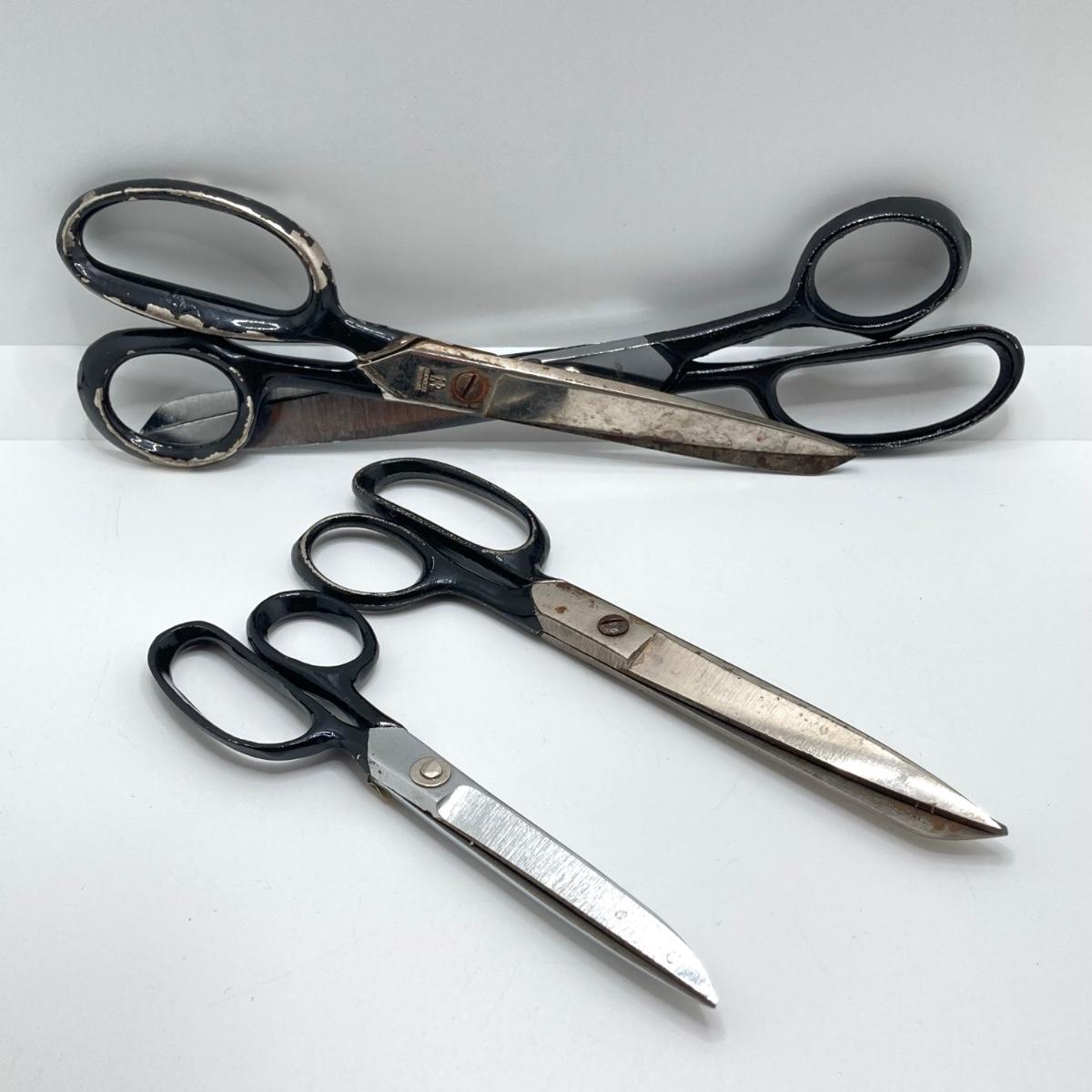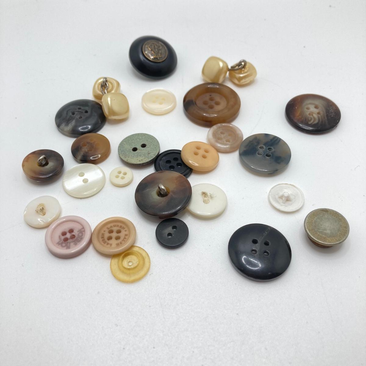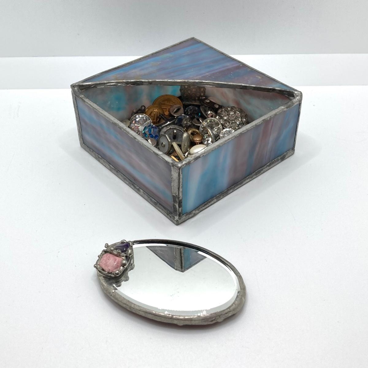 LOT 78: Vintage Sewing / Crafting Collection - Buttons, Scissors, Pins with Stained Glass Mirror and Trinket Holder