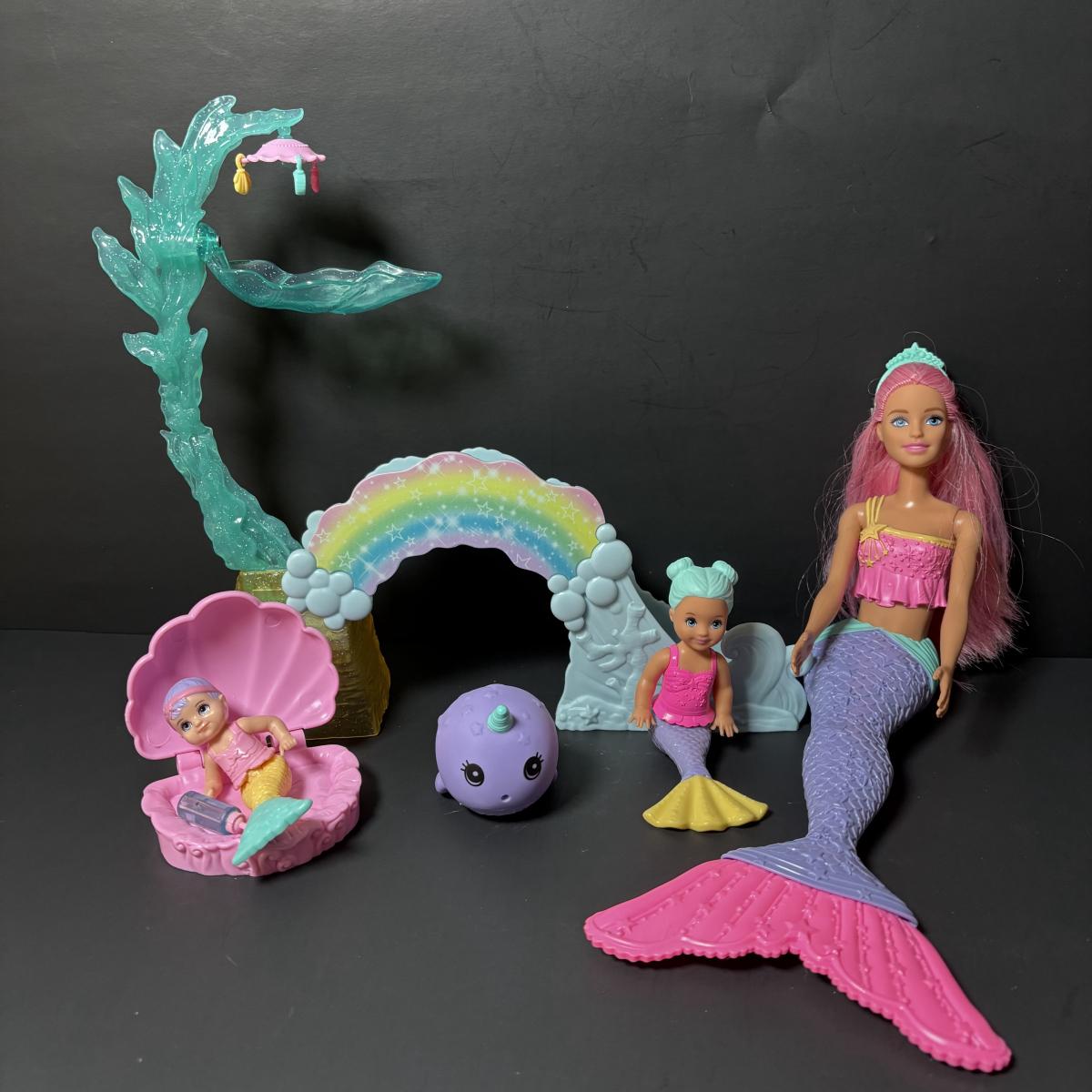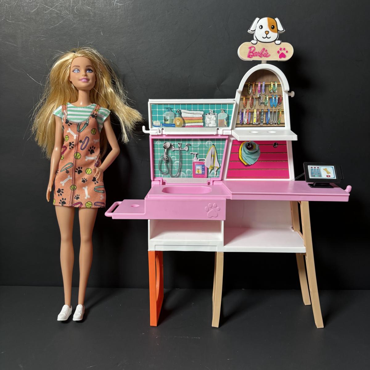LOT 111: Barbie & Pet Boutique Playset along with Barbie Dream Topia Mermaid, Mertoddler, Merbaby Playset