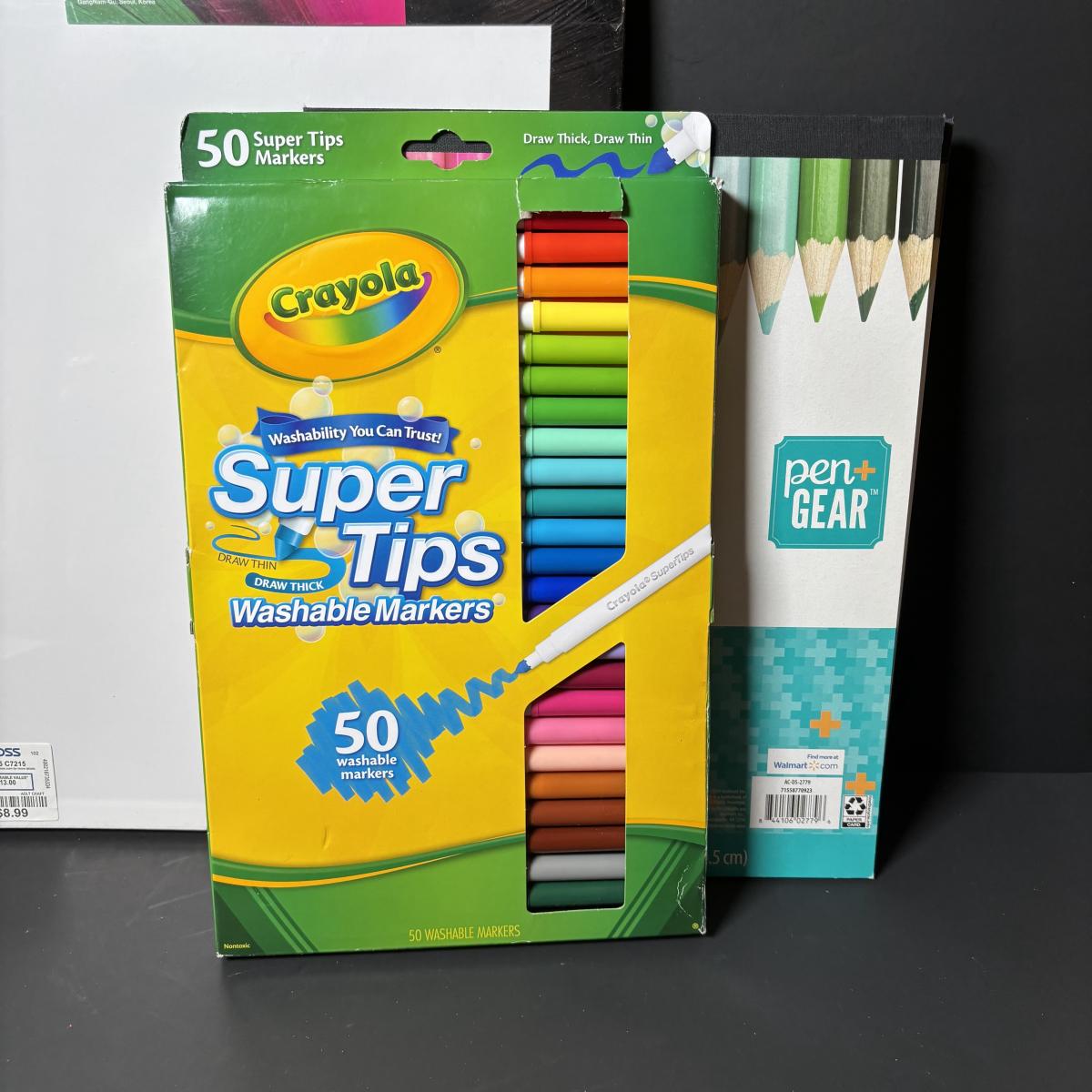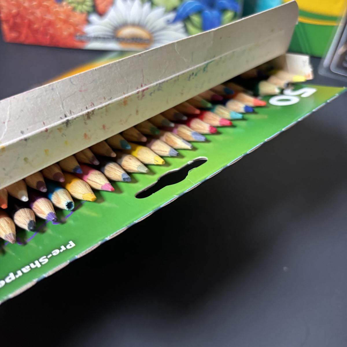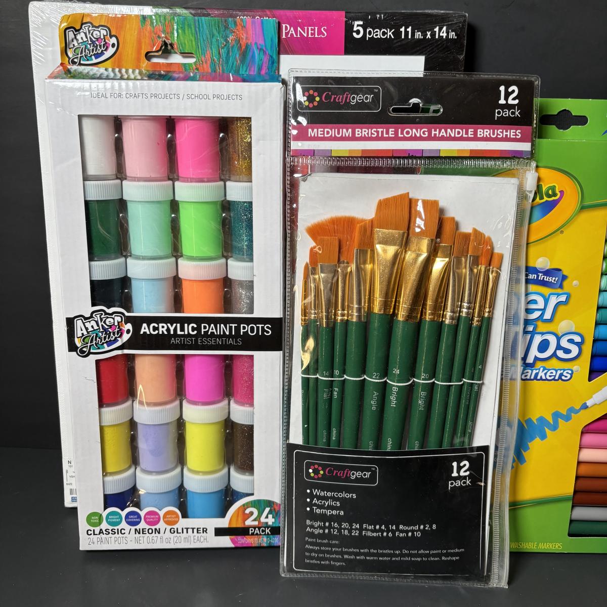 LOT 112: Art Supplies: Crayons, Colored Pencils, Paint Brushes, Coloring Book & More