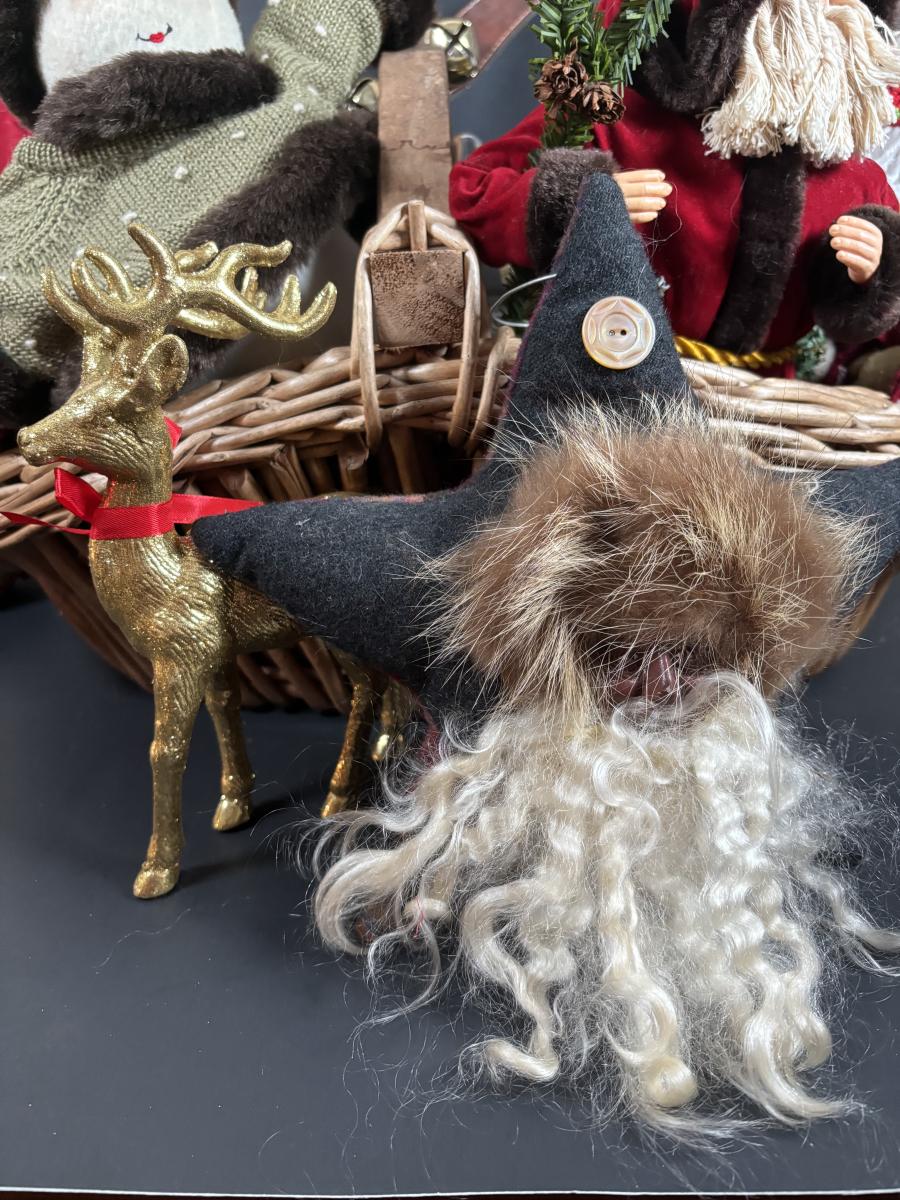 LOT 132: Basket Full of Christmas Decor: Snowmen, Ornaments Santa, Angels
