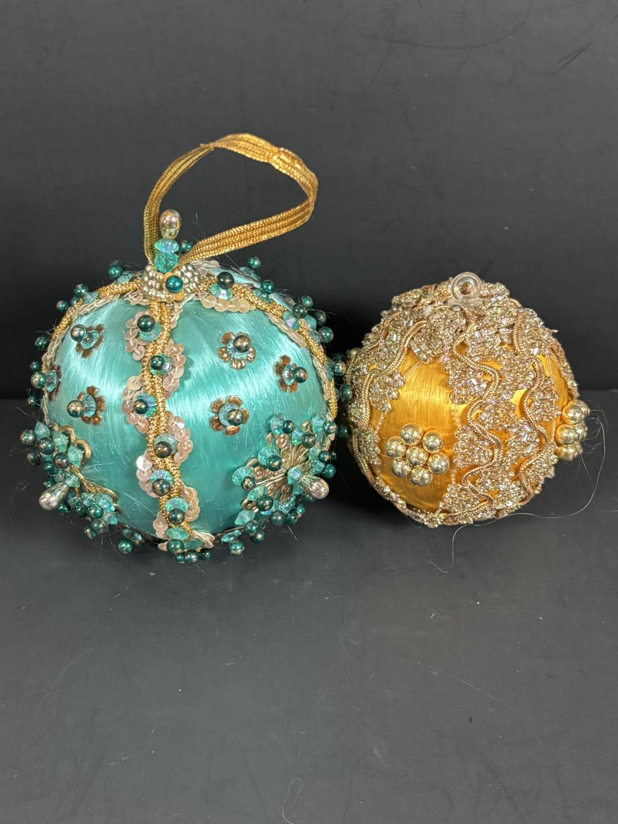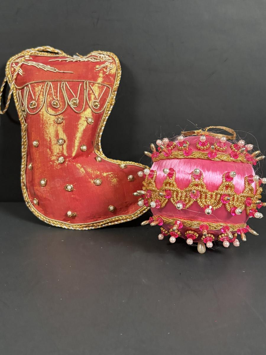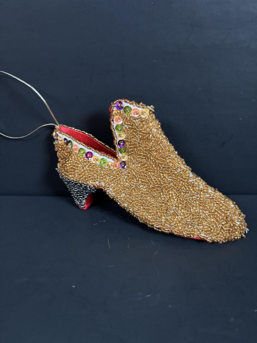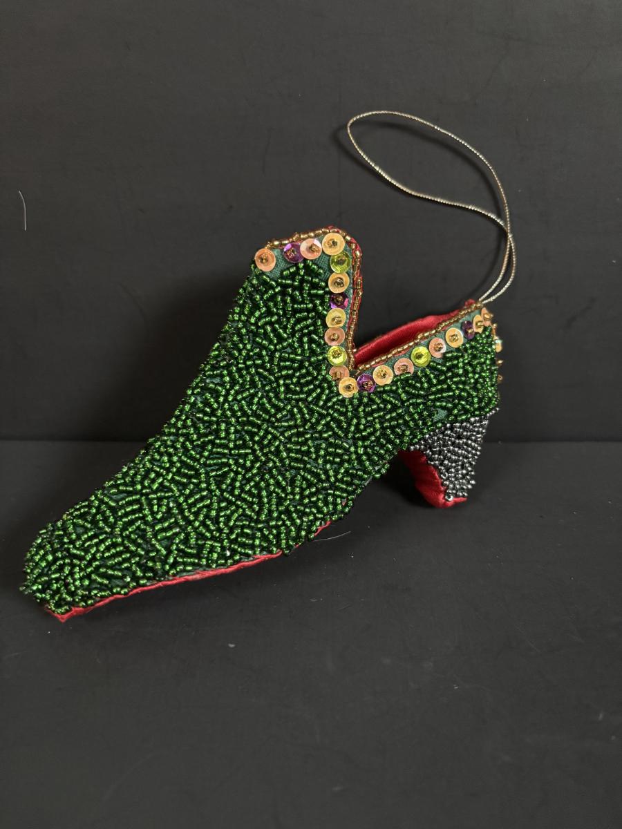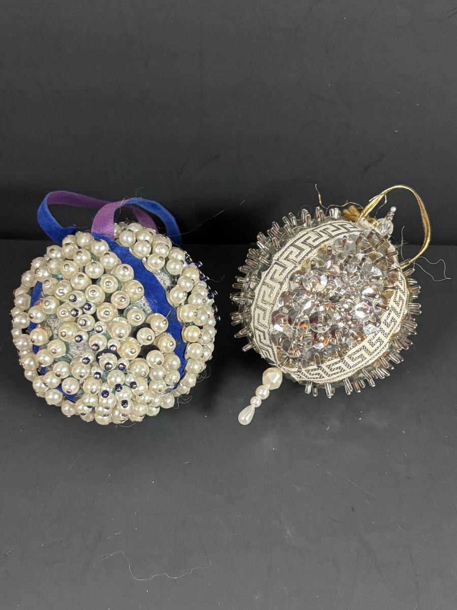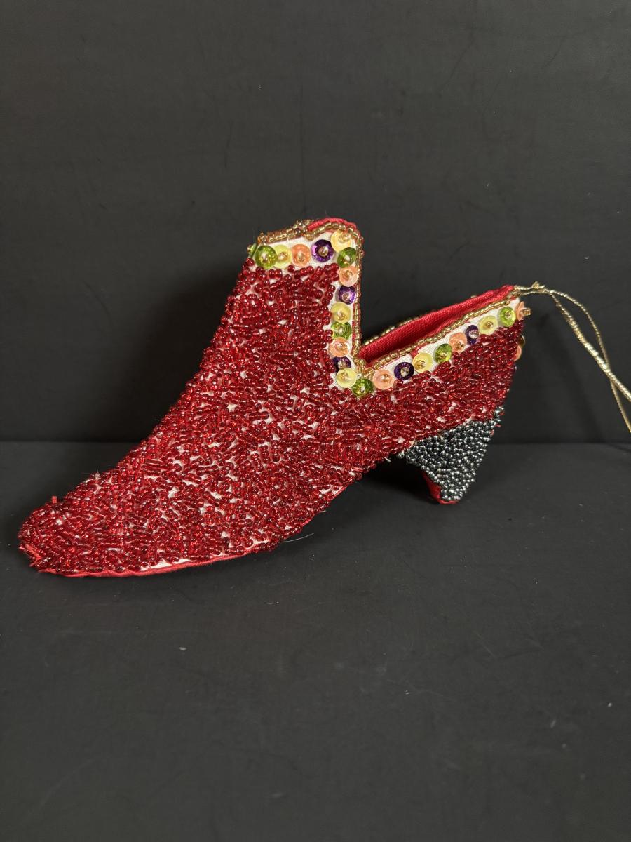 LOT 133: Holiday Ornament Collection: Vintage Pushpins, Beaded Slippers, Tassels