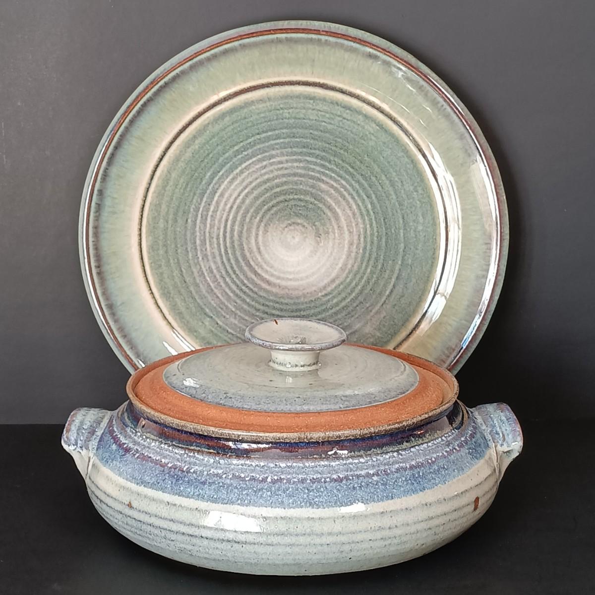 LOT 138: Lipkin Pottery Signed Covered Bowl & Pottery Art Plate