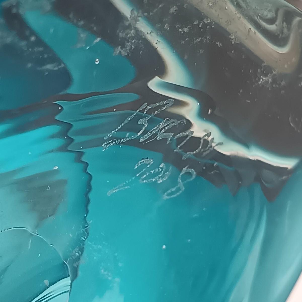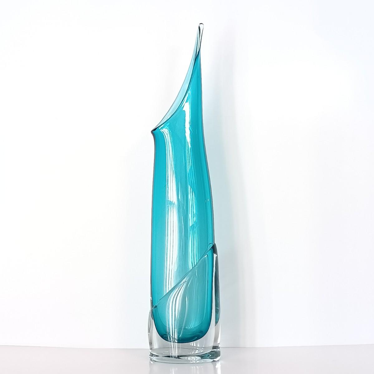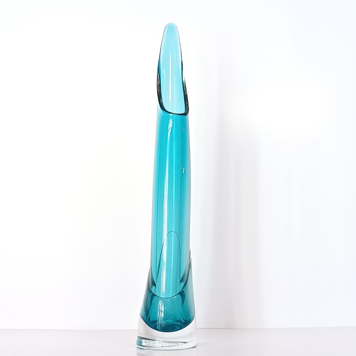 LOT 140: Signed Blue Swung Glass Vase with Signed Orrefors-Style Purple Bud Vase