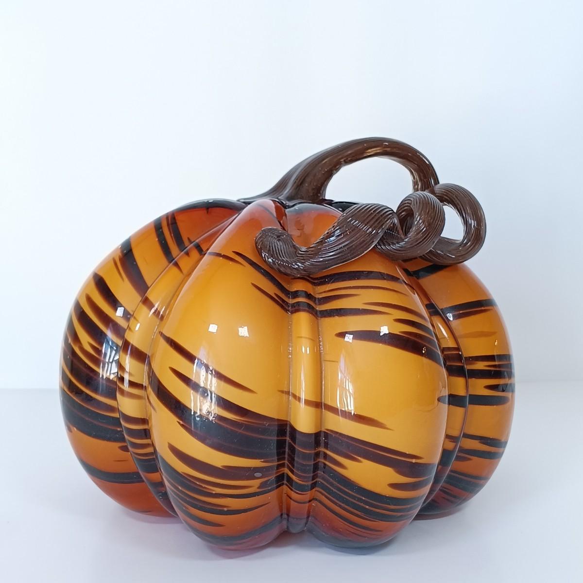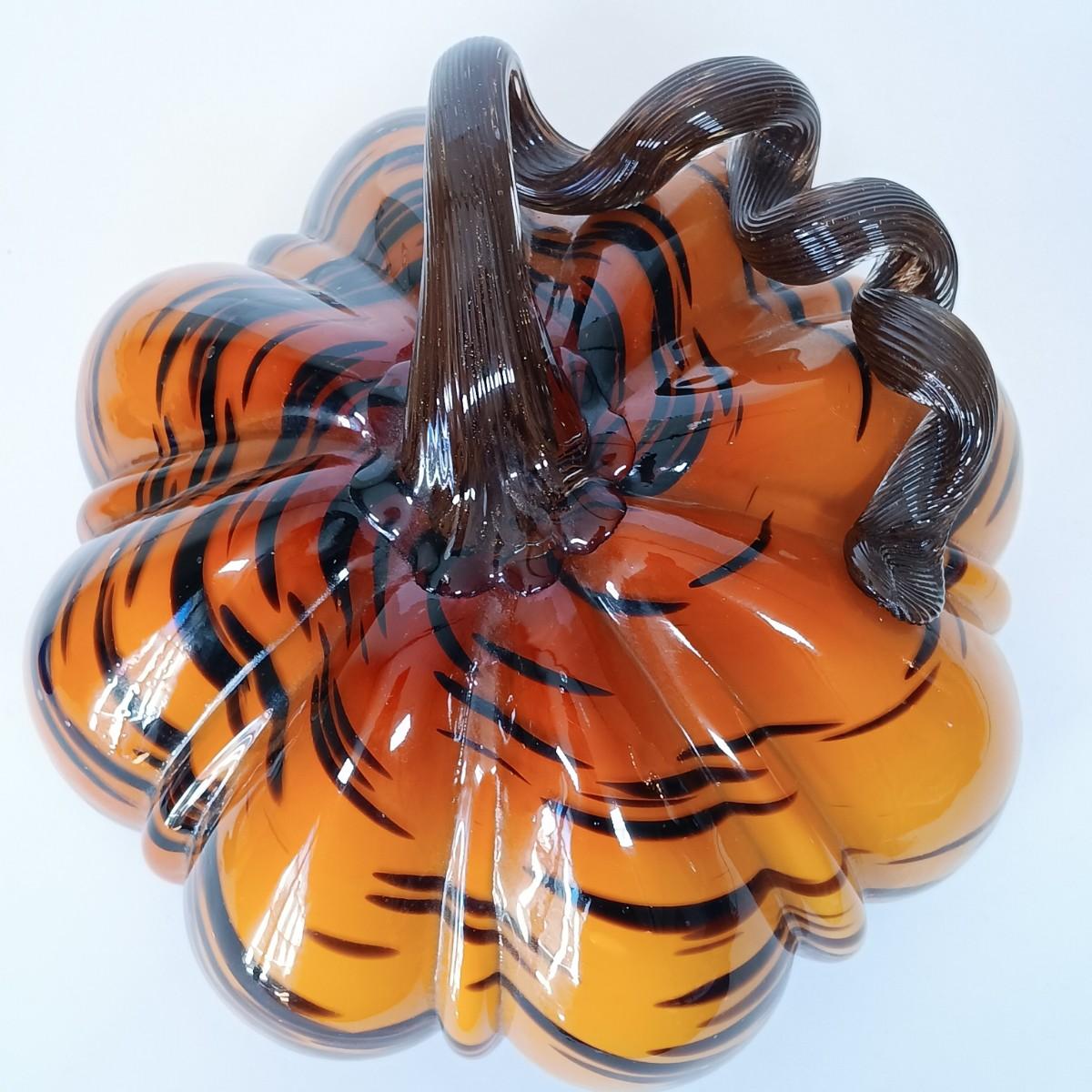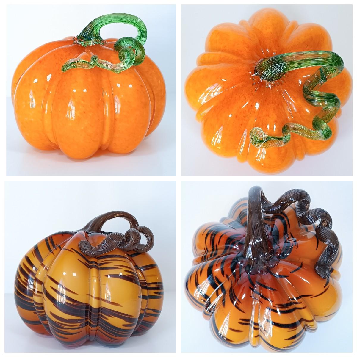 LOT 145: Set of (2) Handmade Glass Art Pumpkins