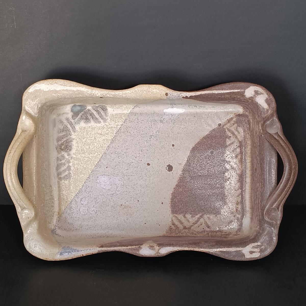 LOT 148: Signed Michael Obranovich Pottery Tray & Signed Pottery Tray with Handles
