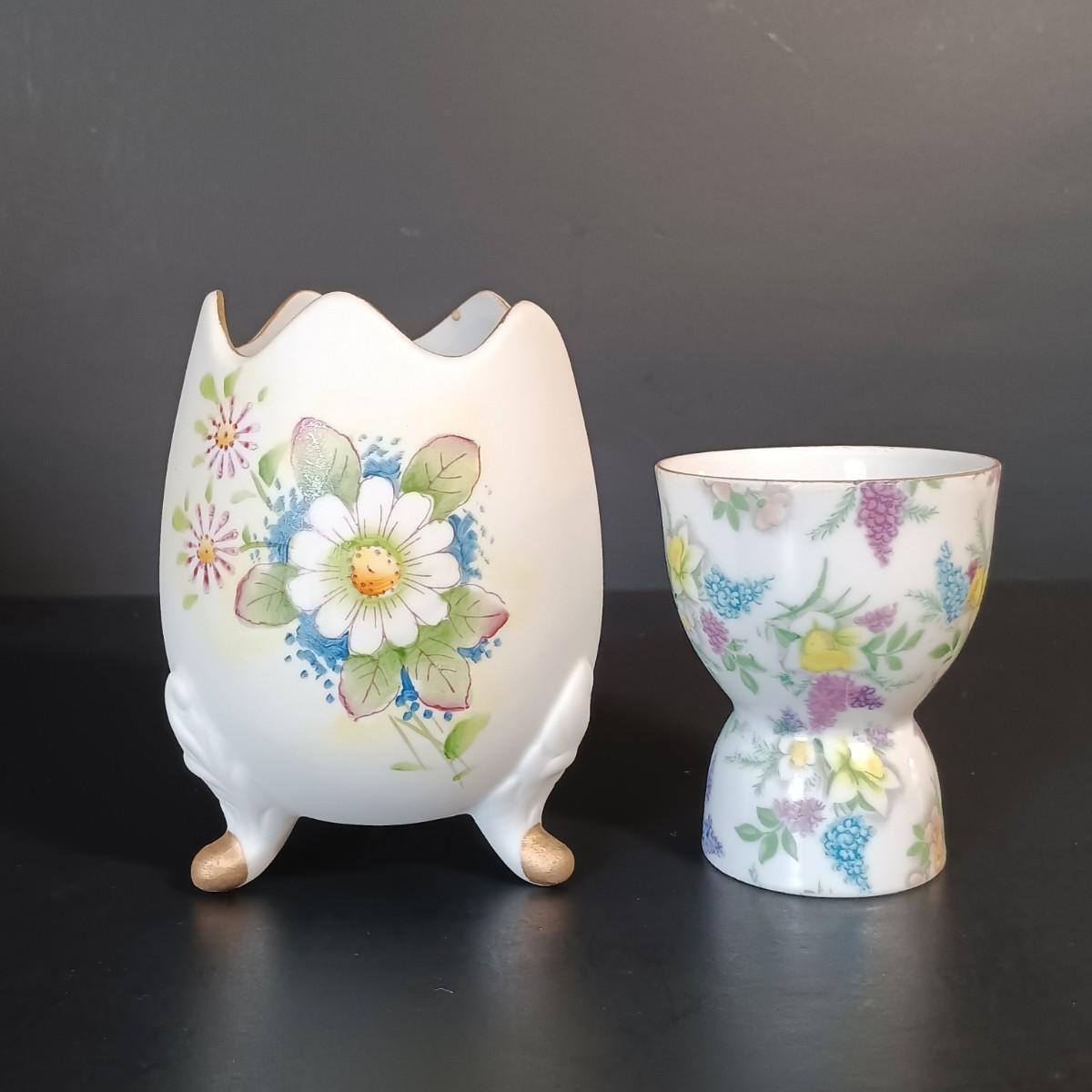 LOT 155: Lefton China Egg Cups, Limoges Art Plates, Lefton Art Pitcher & More