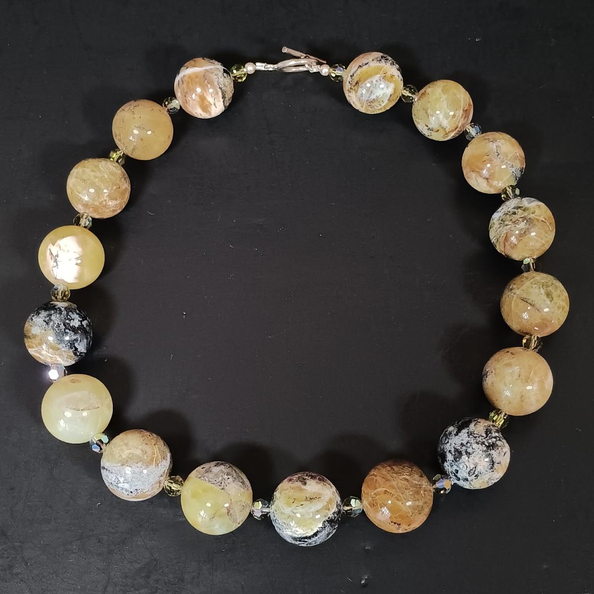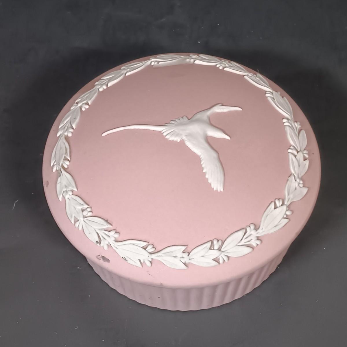 LOT 158: Numbered Perfume Bottle Print, Stone Bead Necklaces, Signed Wedgewood Trinket Box & More