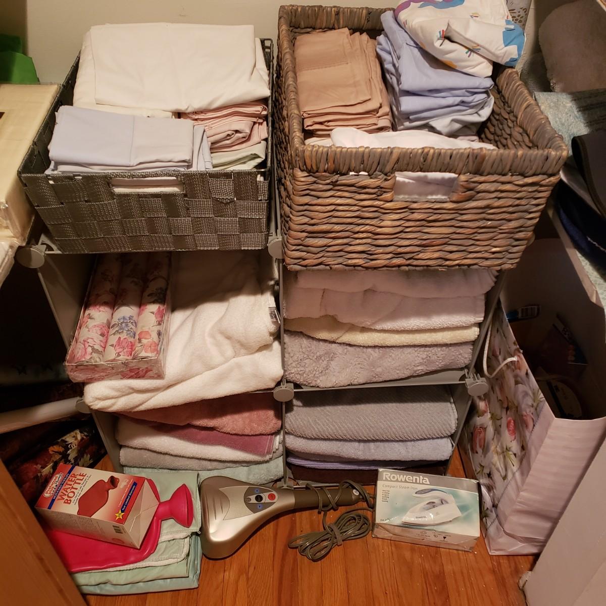 LOT 171: Closet Clear Out-Linens, Towels, Baskets Full of Stationery, Giftwrap & More