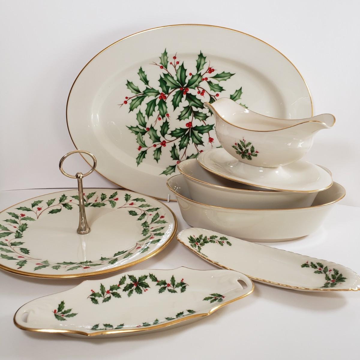 LOT 175: Lenox Holiday Platter, Tidbit Tray, Condiment Trays & Other Serving Ware