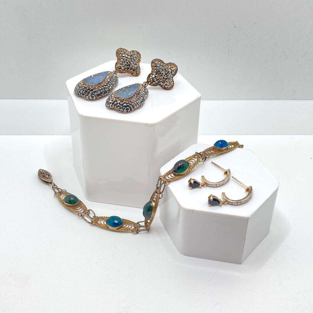 LOT 212: Vintage Sterling Jewelry Collection - Filigree Bracelet and Earrings
