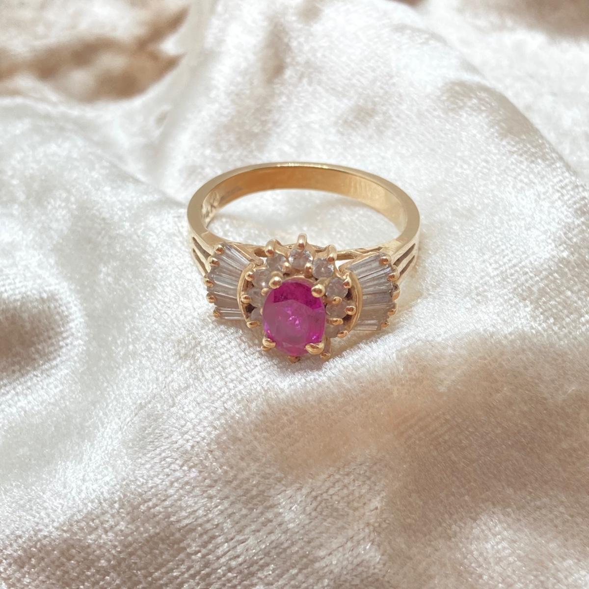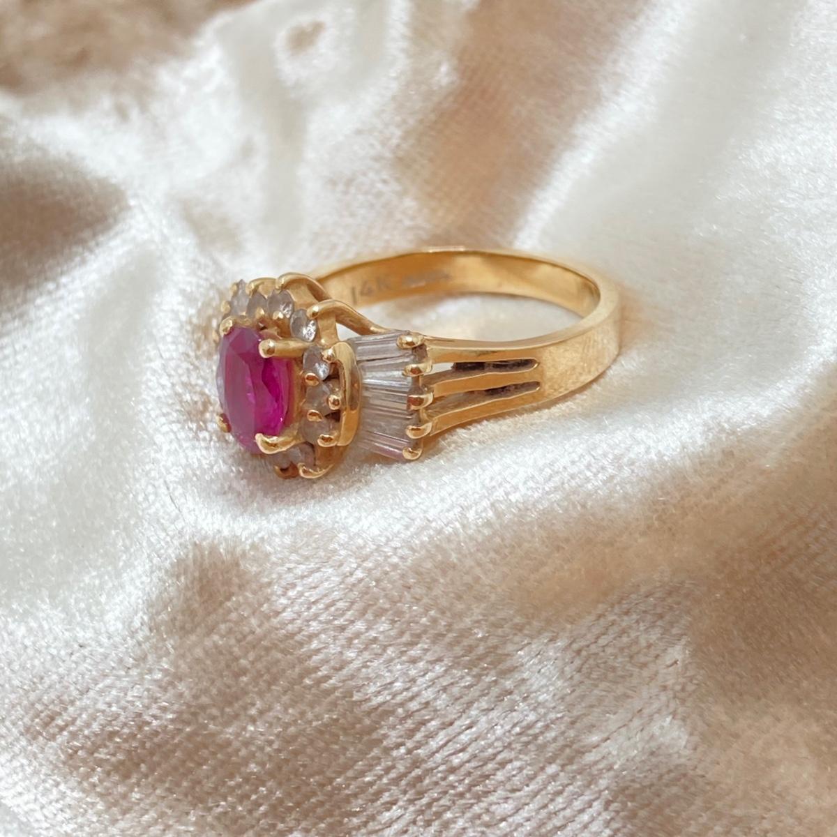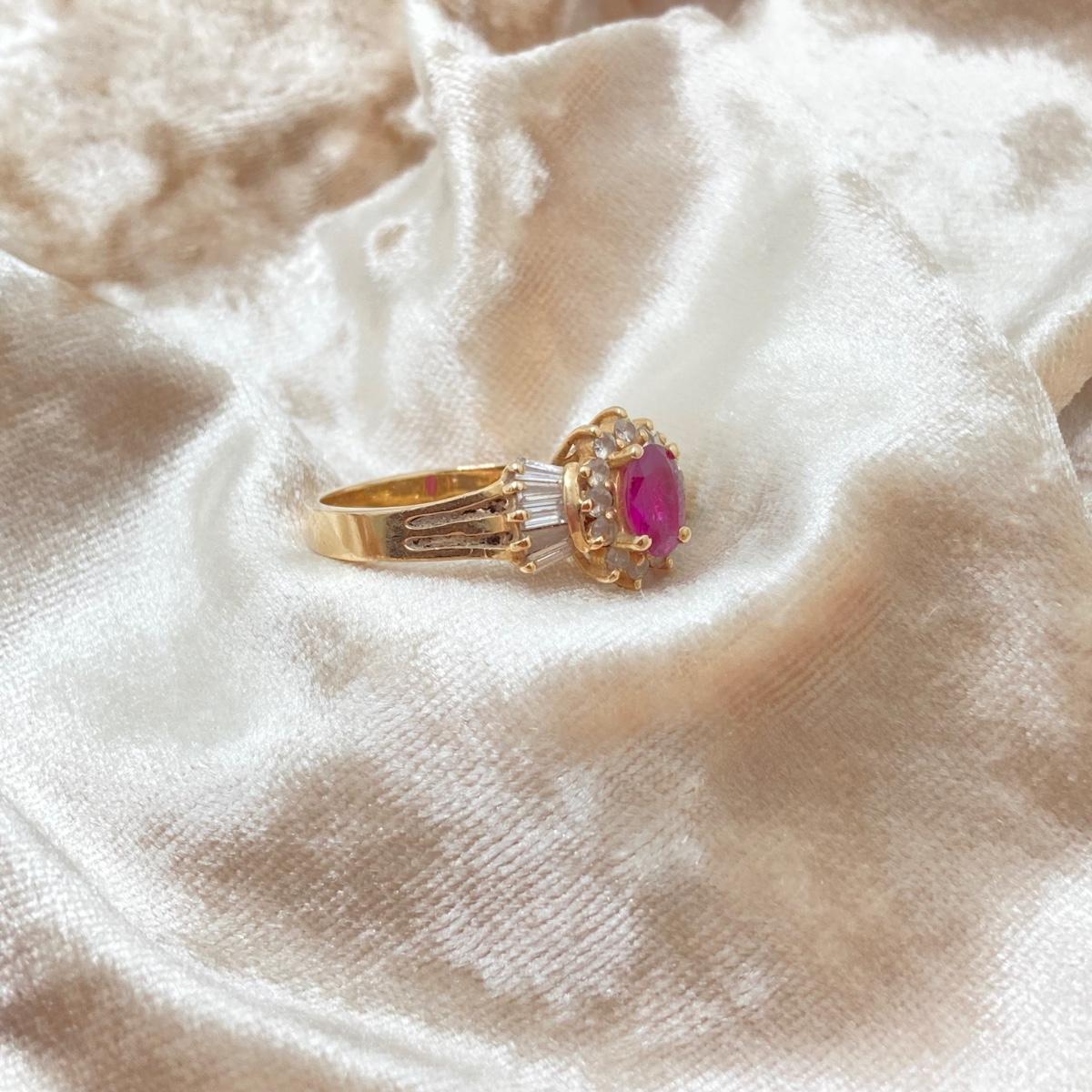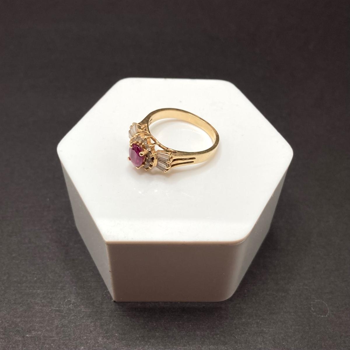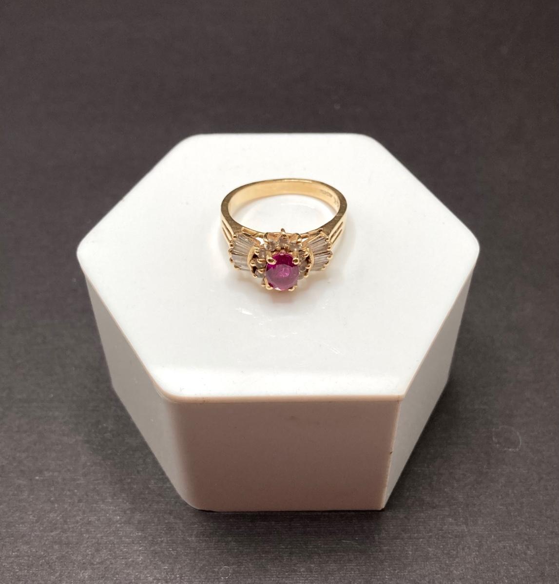 LOT 215: Gold Gemstone and Diamond Ring - 14KT, TW 3.73g, Sz 6.5