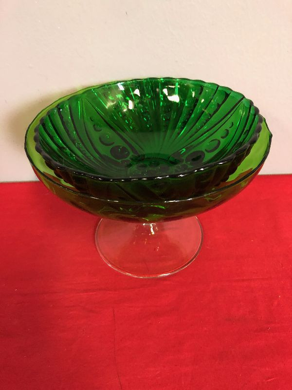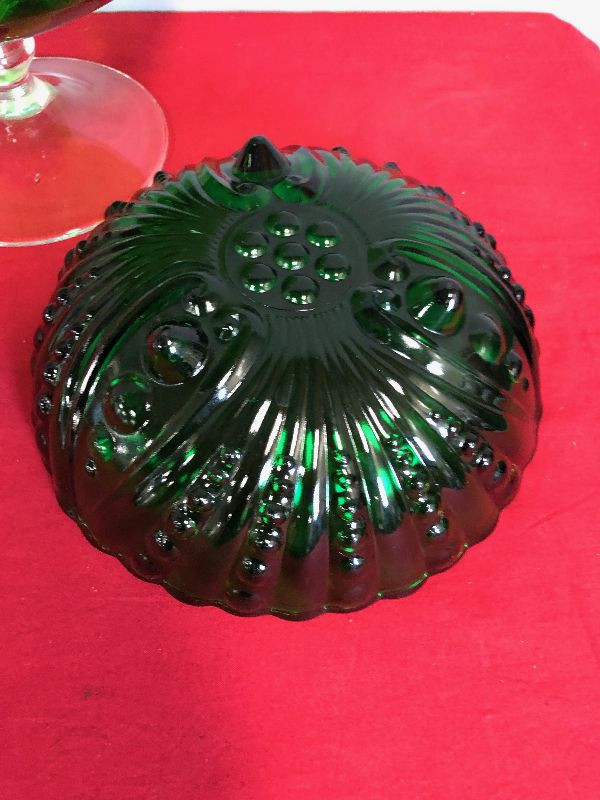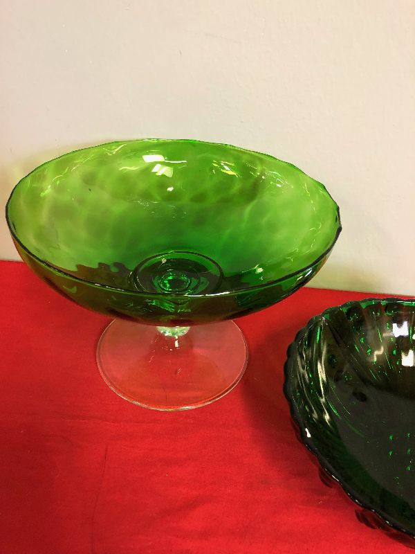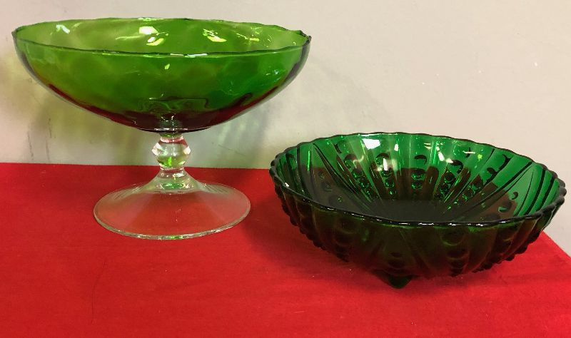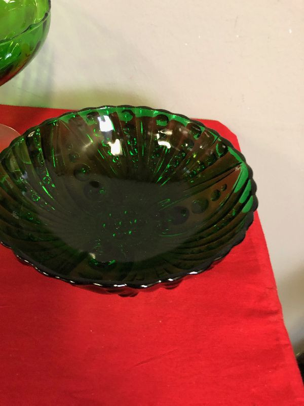 Lot 119 2 green glass bowls - Anchor Hawking Bubble pattern