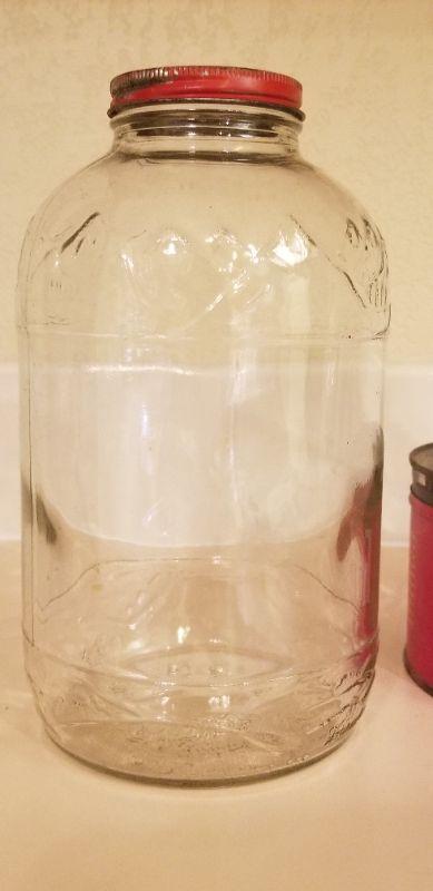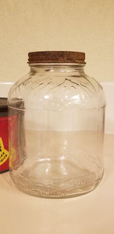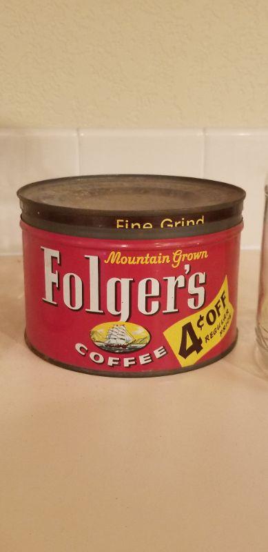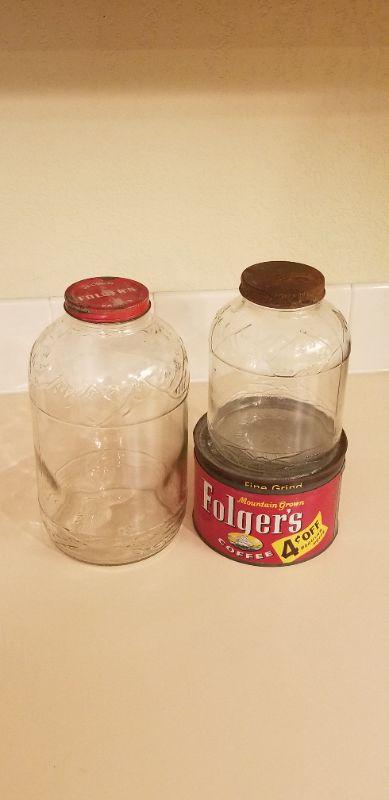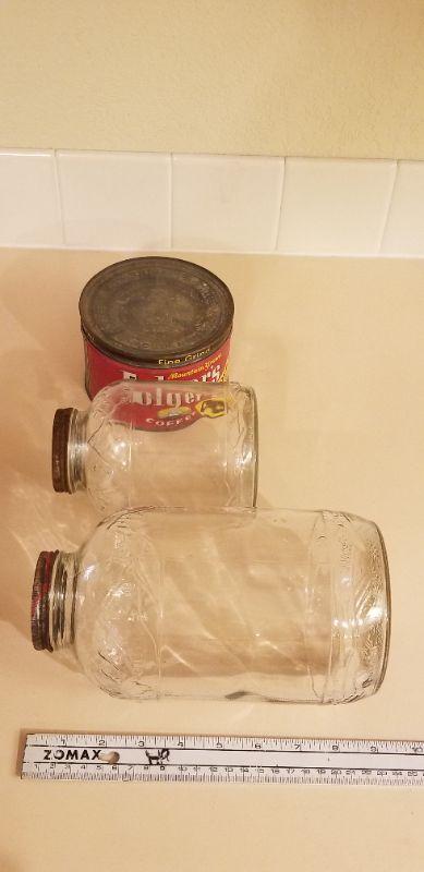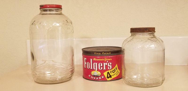 Lot #119: Vintage Duraglass FOLGERS COFFEE Mountain Theme Glass Containers w/ Red Tin