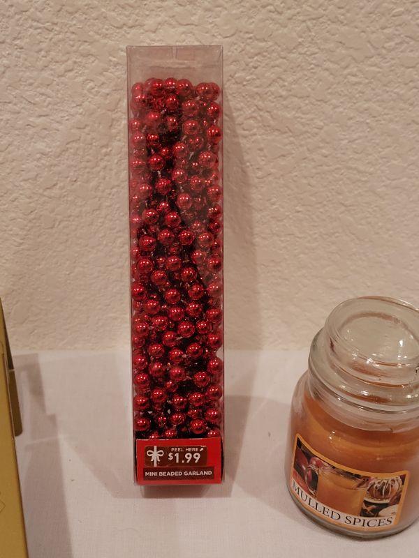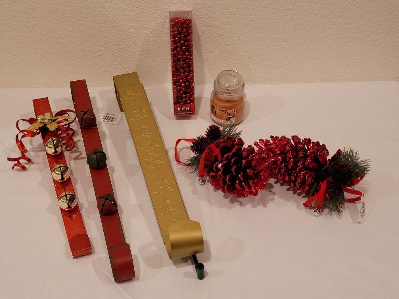 Lot 120: NEW Holiday Candle, Wreath Hangers, (2) Ornaments and Beads
