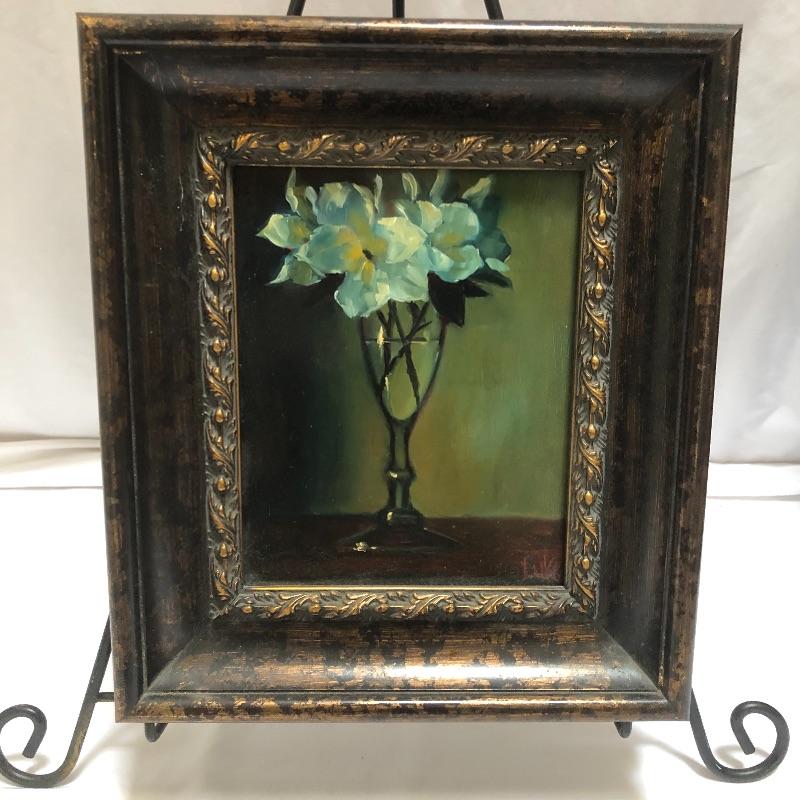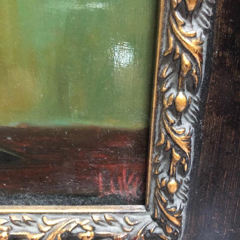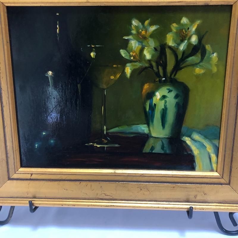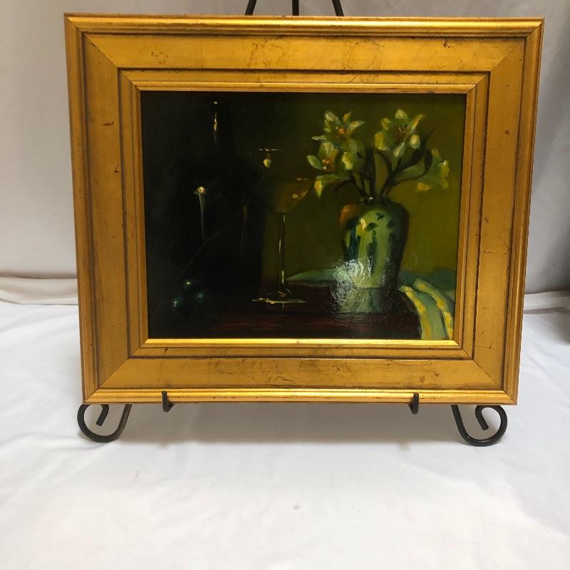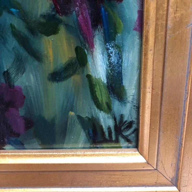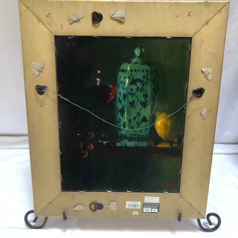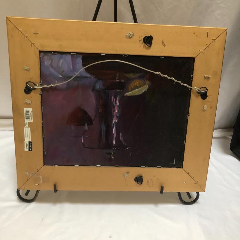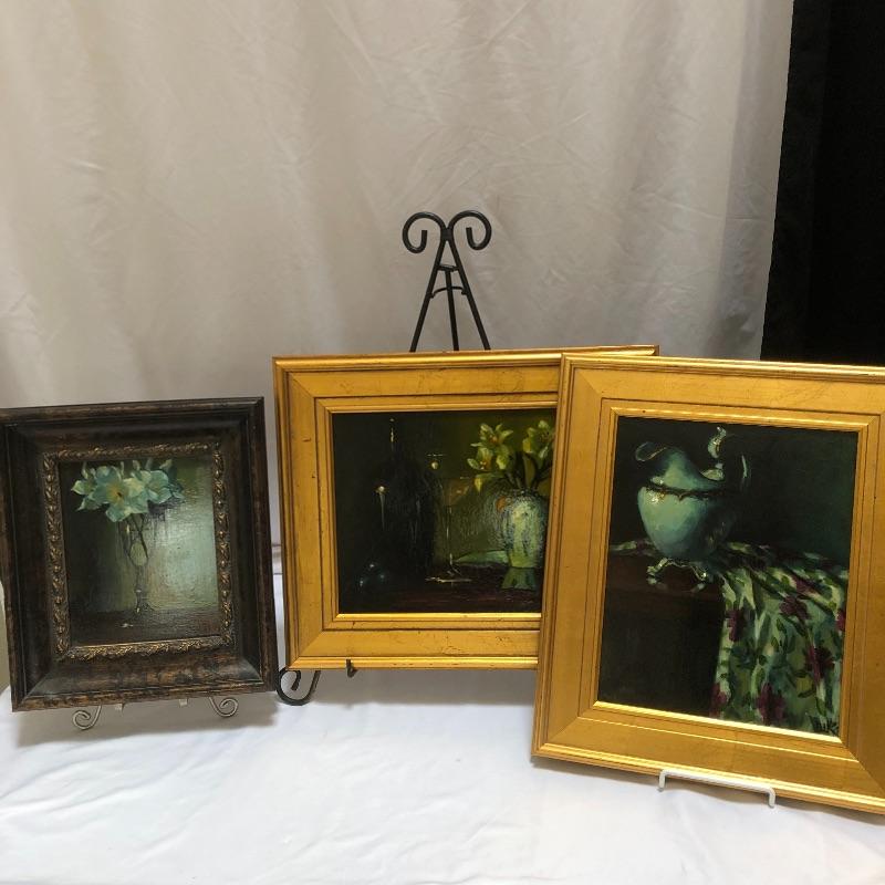 Add some color to your home with these three pieces of art. Lot includes two matching frames with artwork on both sides of what that appears to be board and one single sided art in a bronze colored frame, this art is also on board. Largest frames measure 16.5” x 19.5”.
