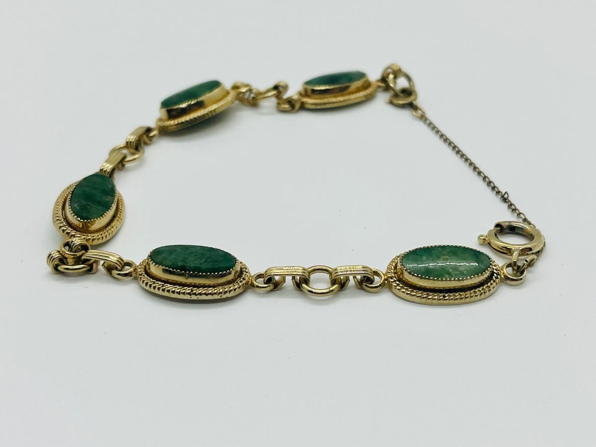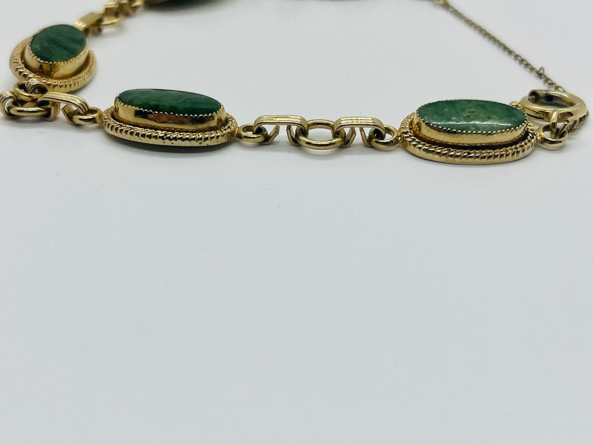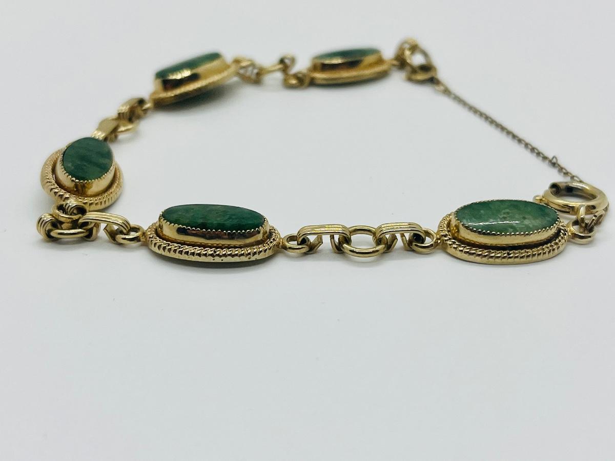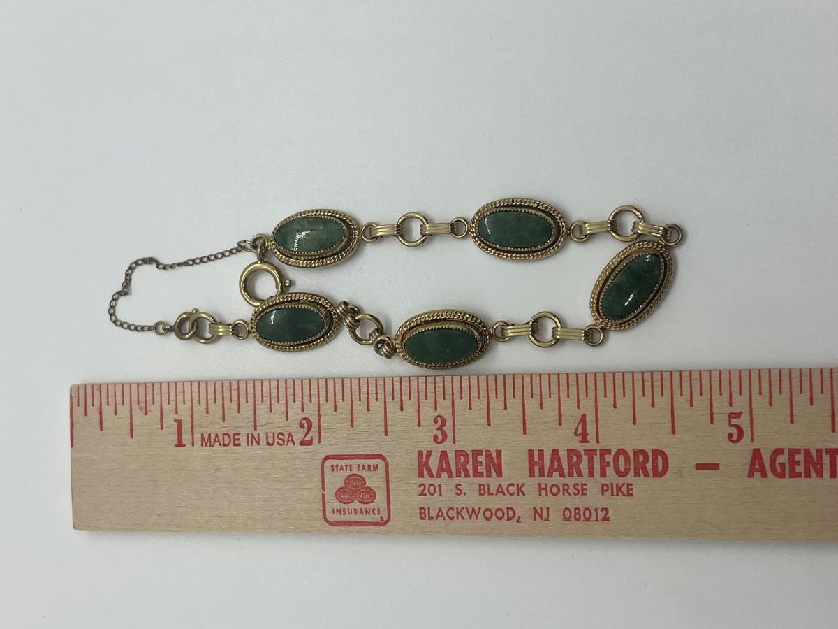 Lot 119: Vintage 1/20th 12k GF Gold-Filled Jade bracelet with Safety Chain