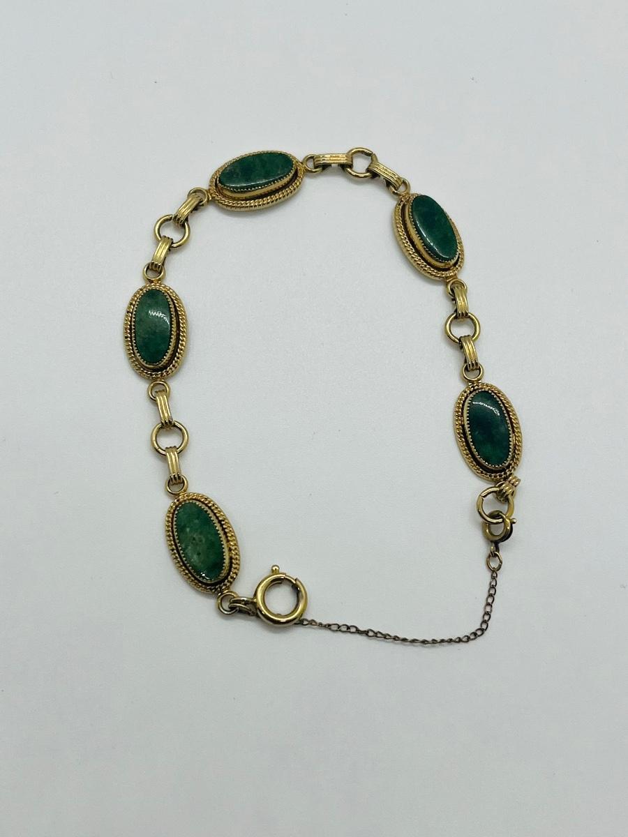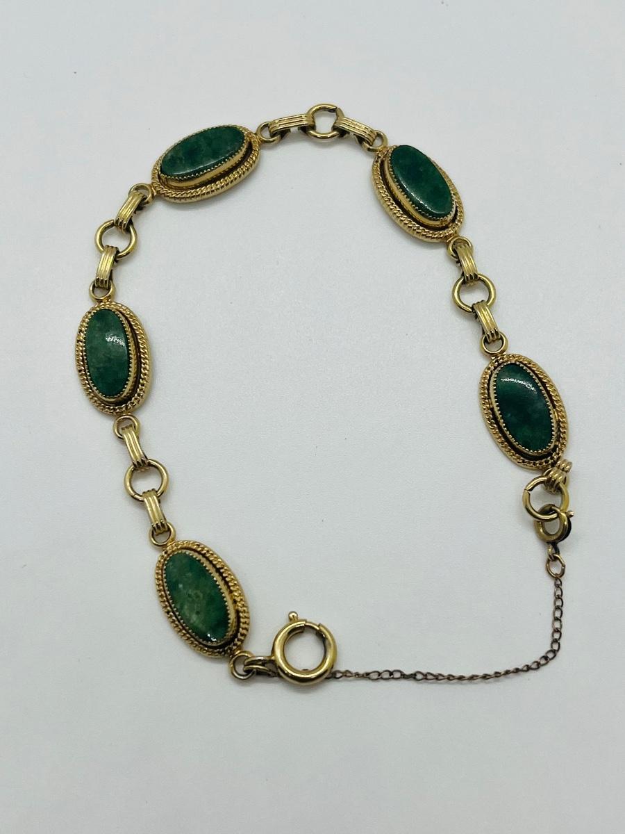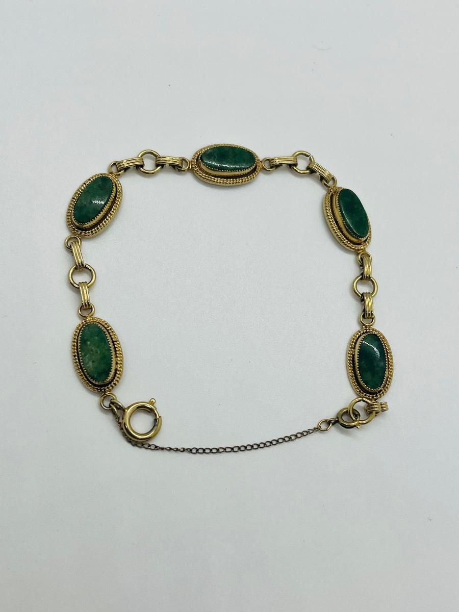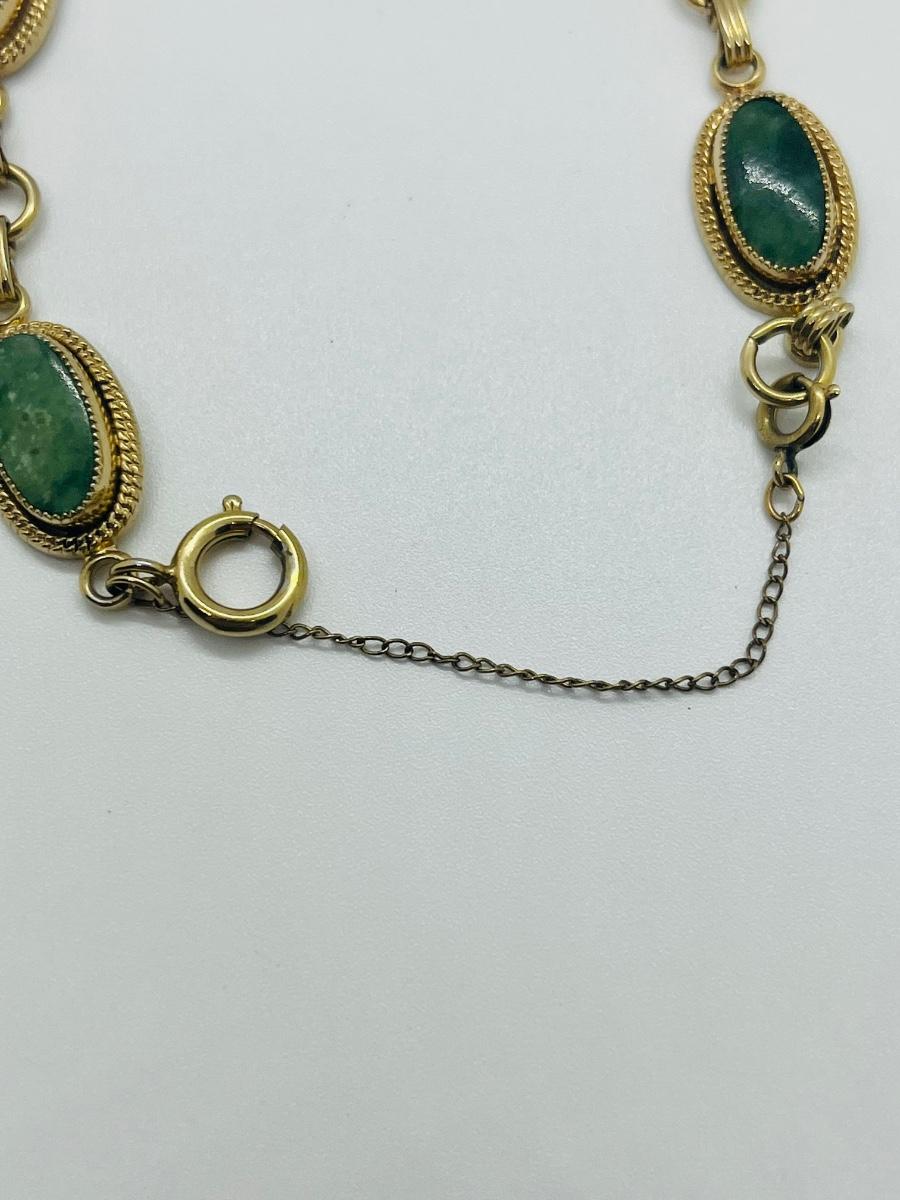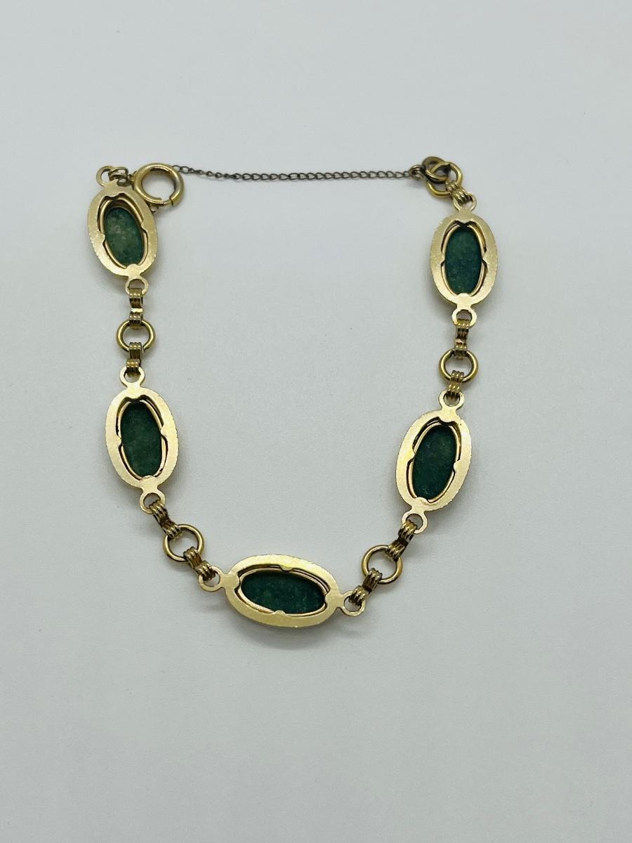 Lot 119: Vintage 1/20th 12k GF Gold-Filled Jade bracelet with Safety Chain