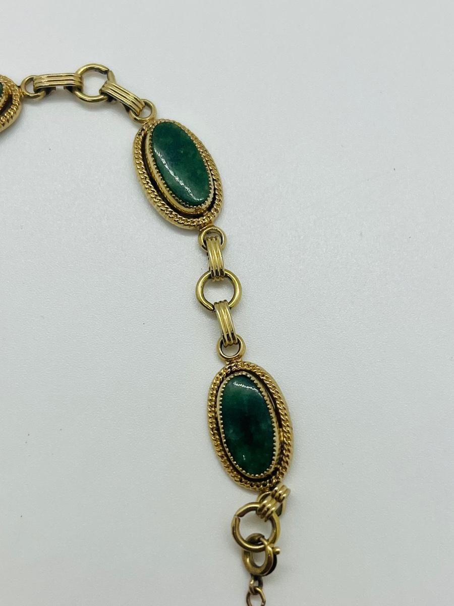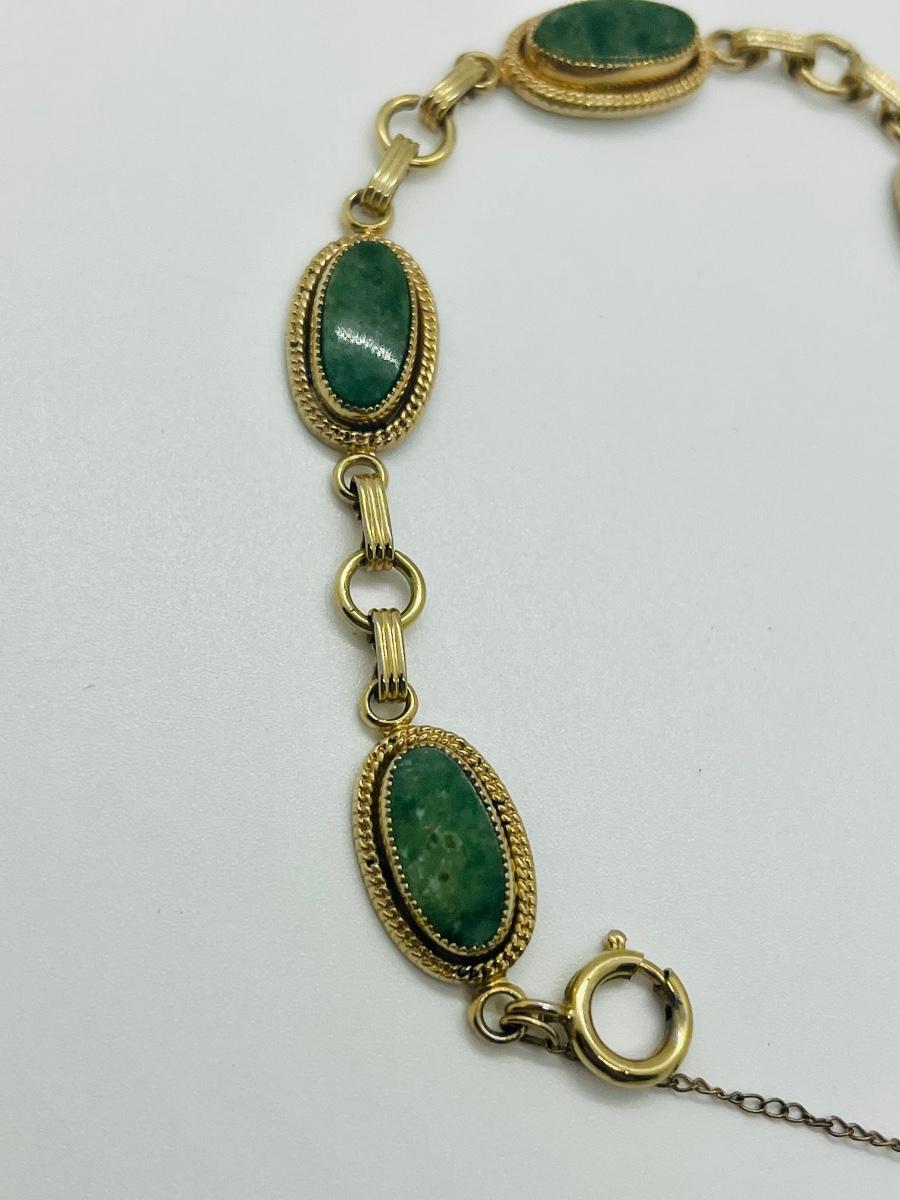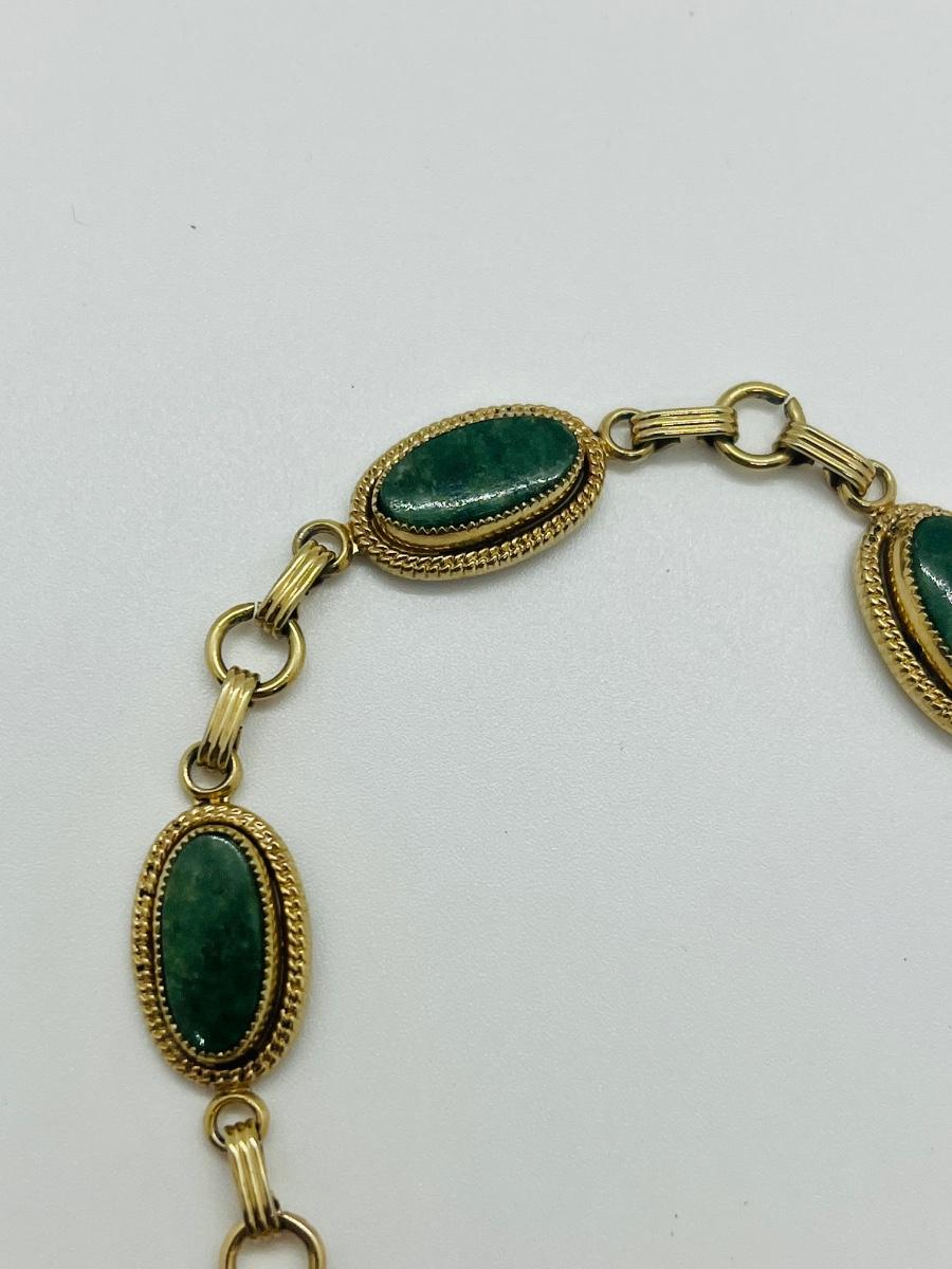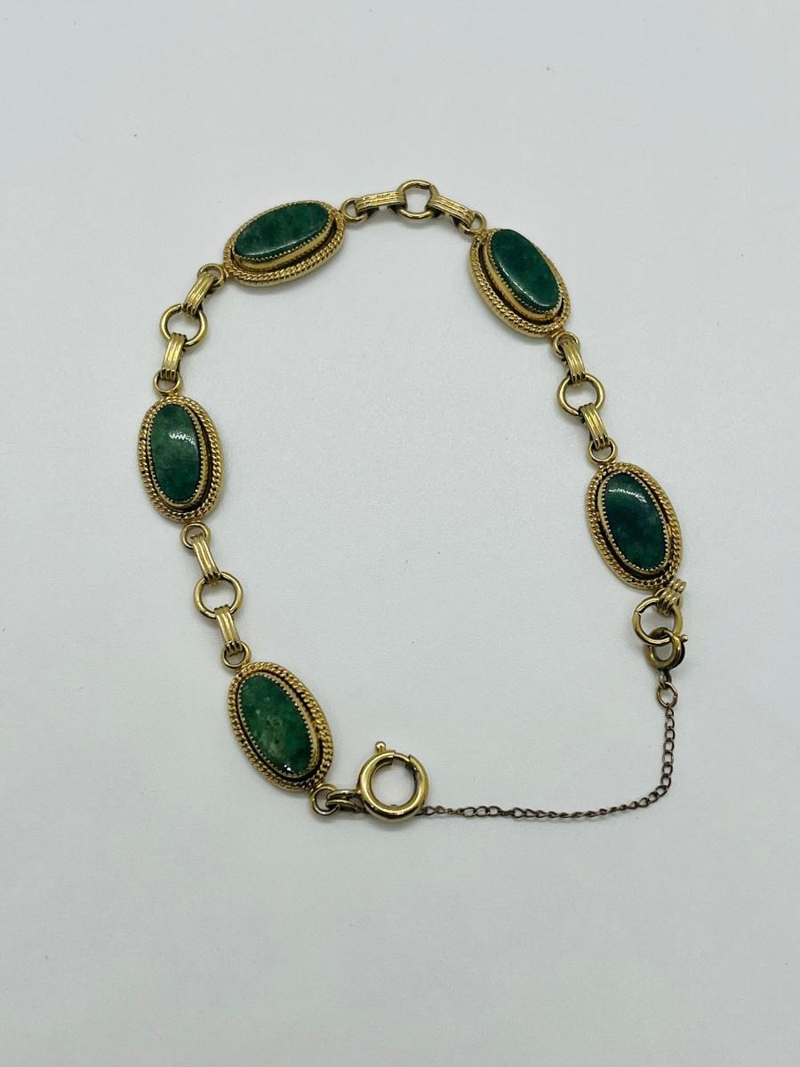 Lot 119: Vintage 1/20th 12k GF Gold-Filled Jade bracelet with Safety Chain