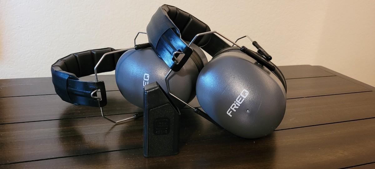 Lot 119: (2) FRIEQ Gun Range Hearing Protection Headsets + GLOCK Magazine Speed Loader