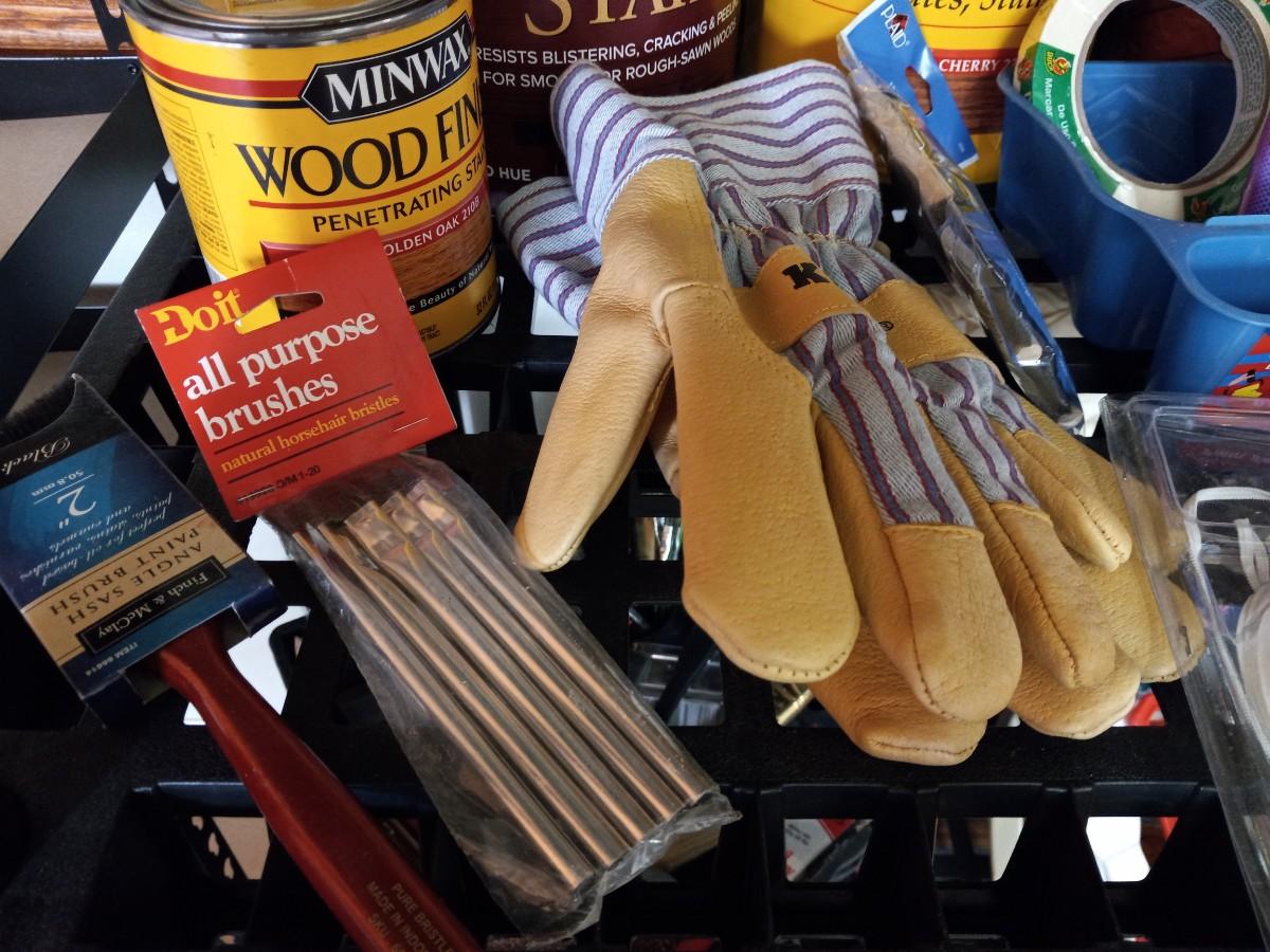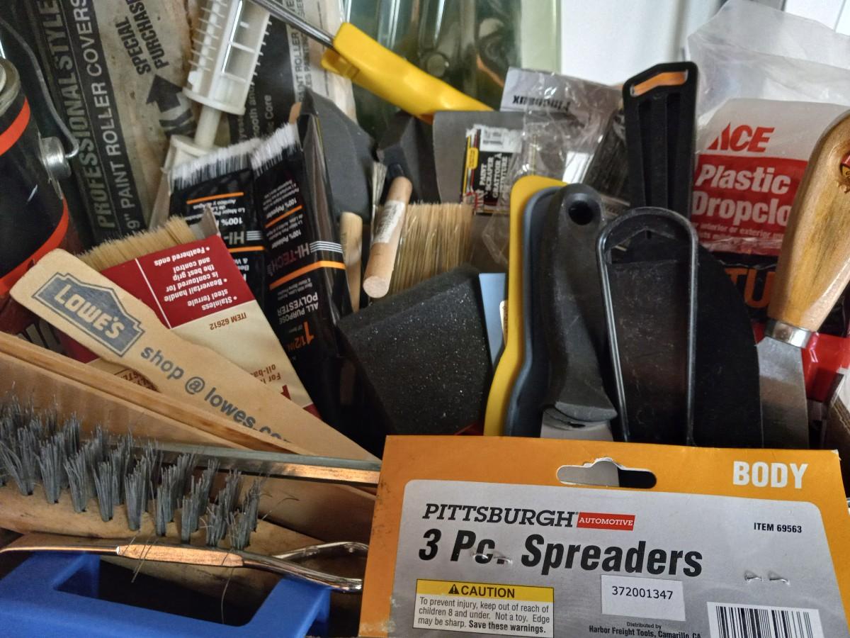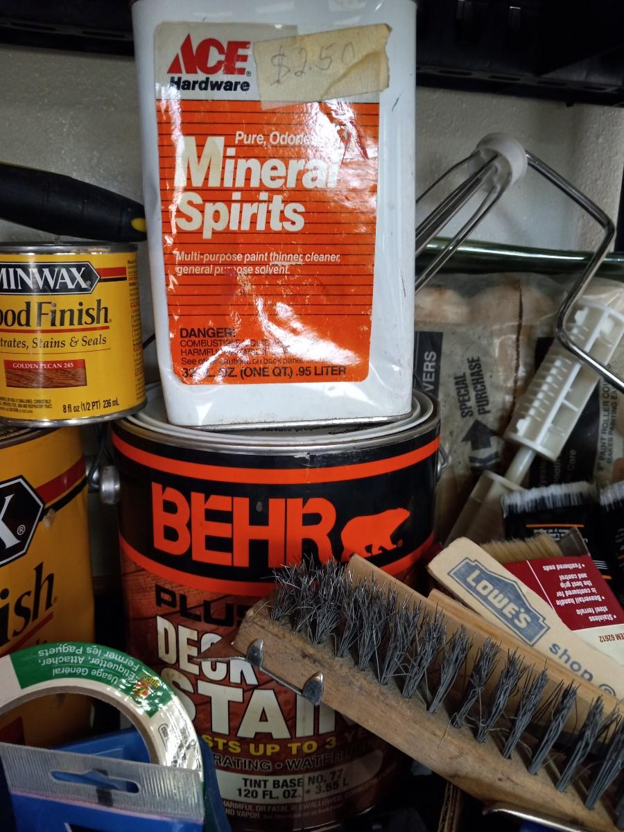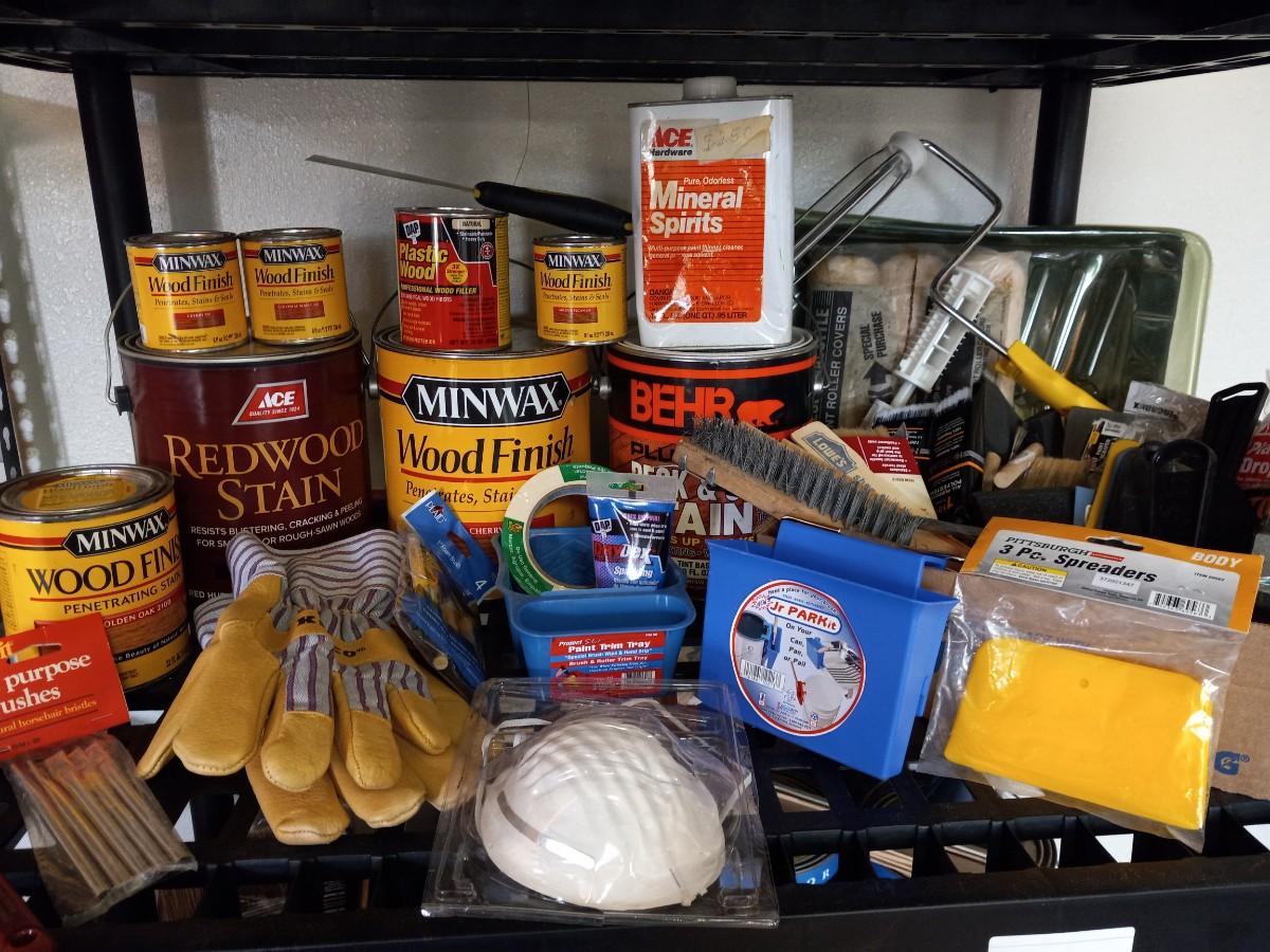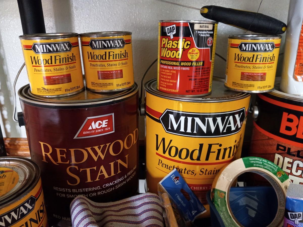 PAINTING SUPPLIES AND A VARIETY OF STAINS