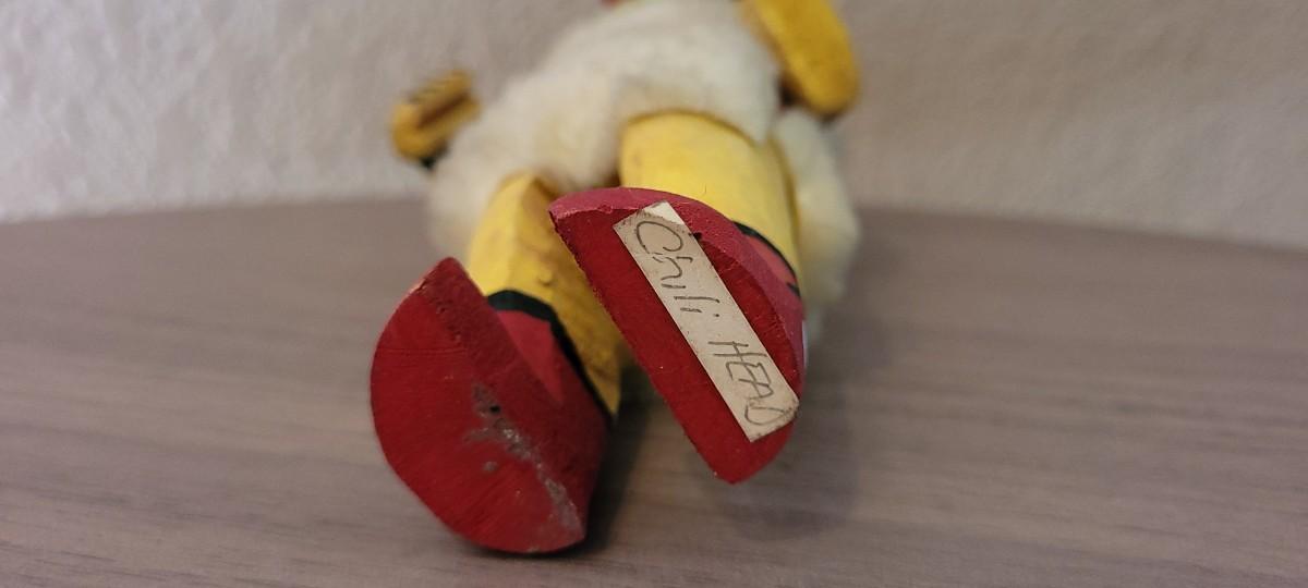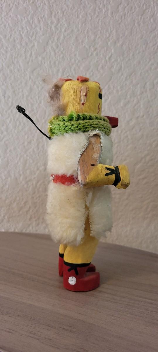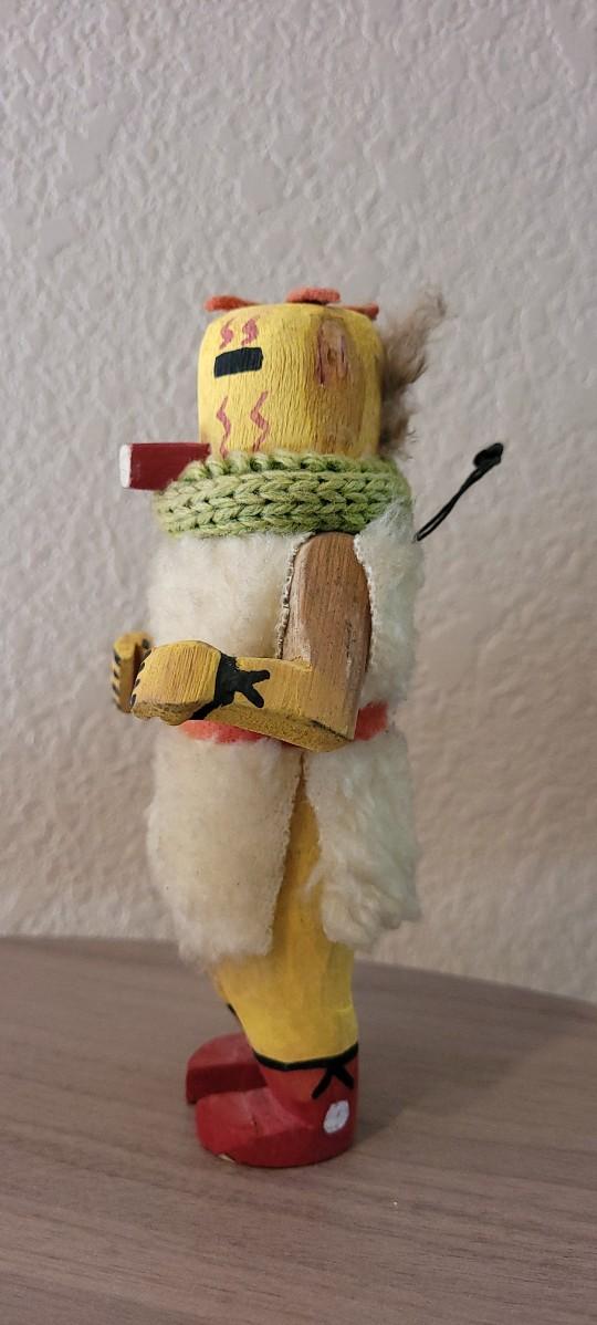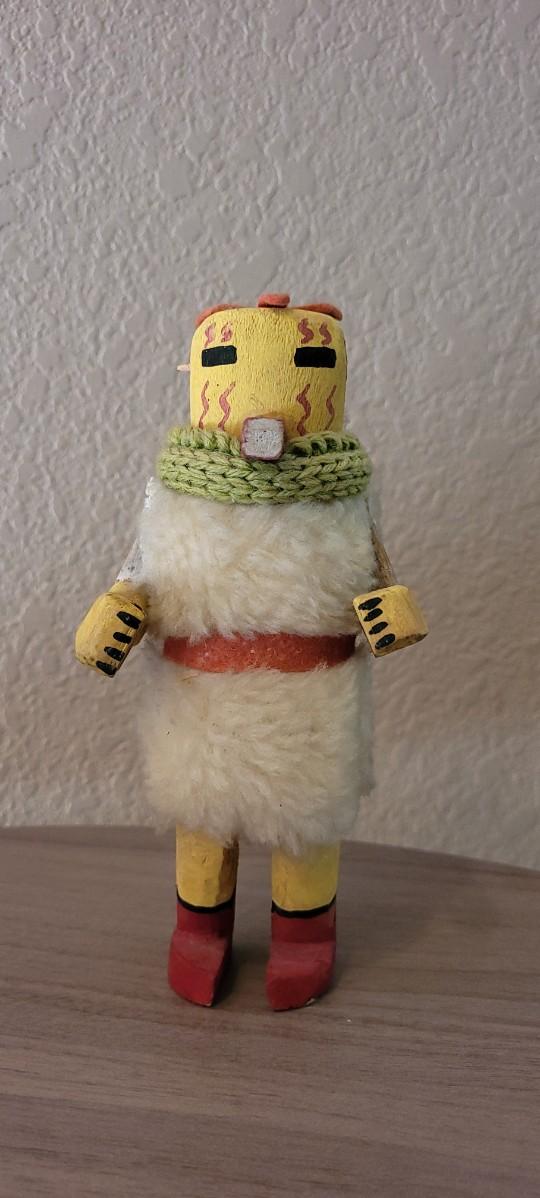 Colorful Yellow and Red Kachina Doll with name "Chili Head" on the underside.