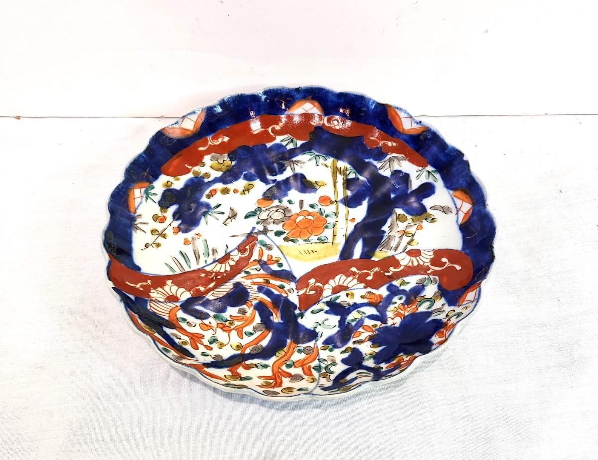 Classic antique Chinese Imari plate - 8.5" across, couple of small losses to rim - rice cobalt blue coloring.