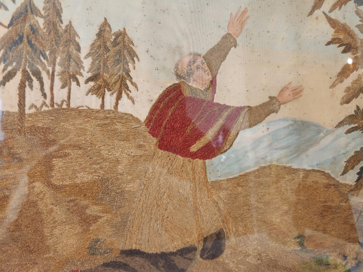 Lot #119 Antique Embroidery - French, dated 1846 - St. Charles Borromeo