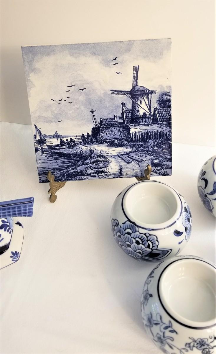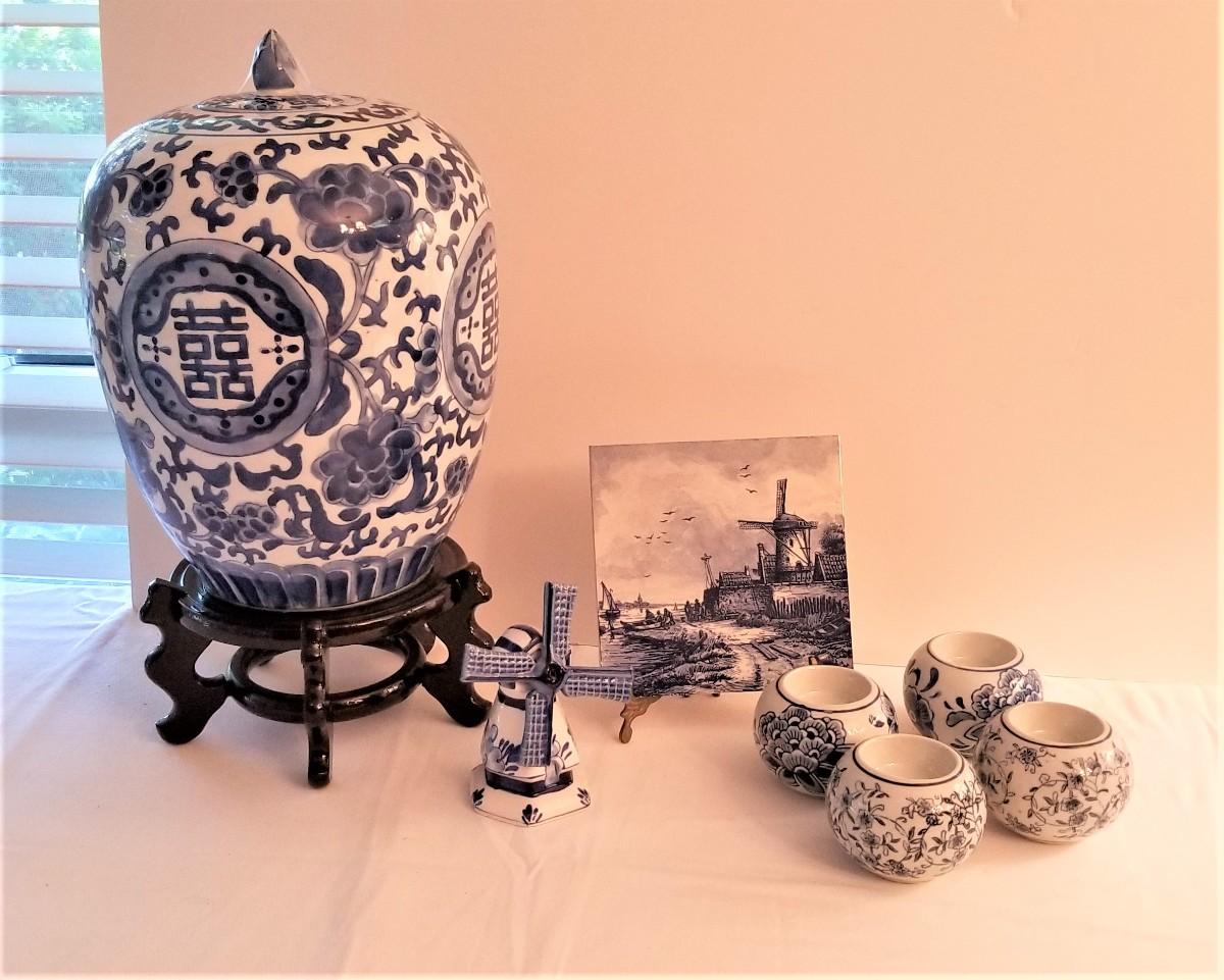You get all you see here - Ginger jar on stand, Delft windmill and tile, and four votive candle holders. For scale, ginger jar is 16" tall on stand. All in good condition.