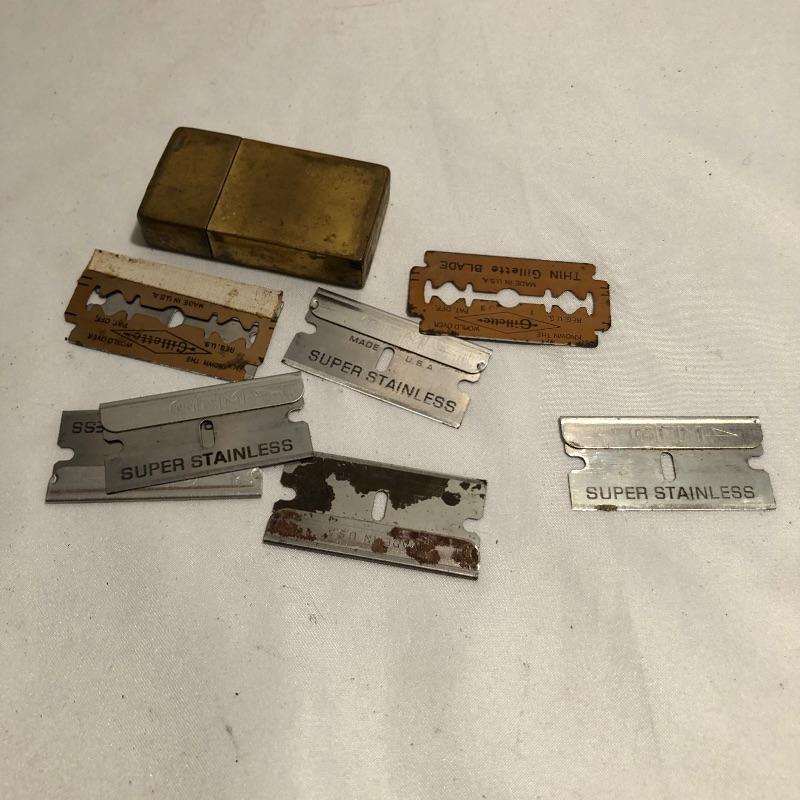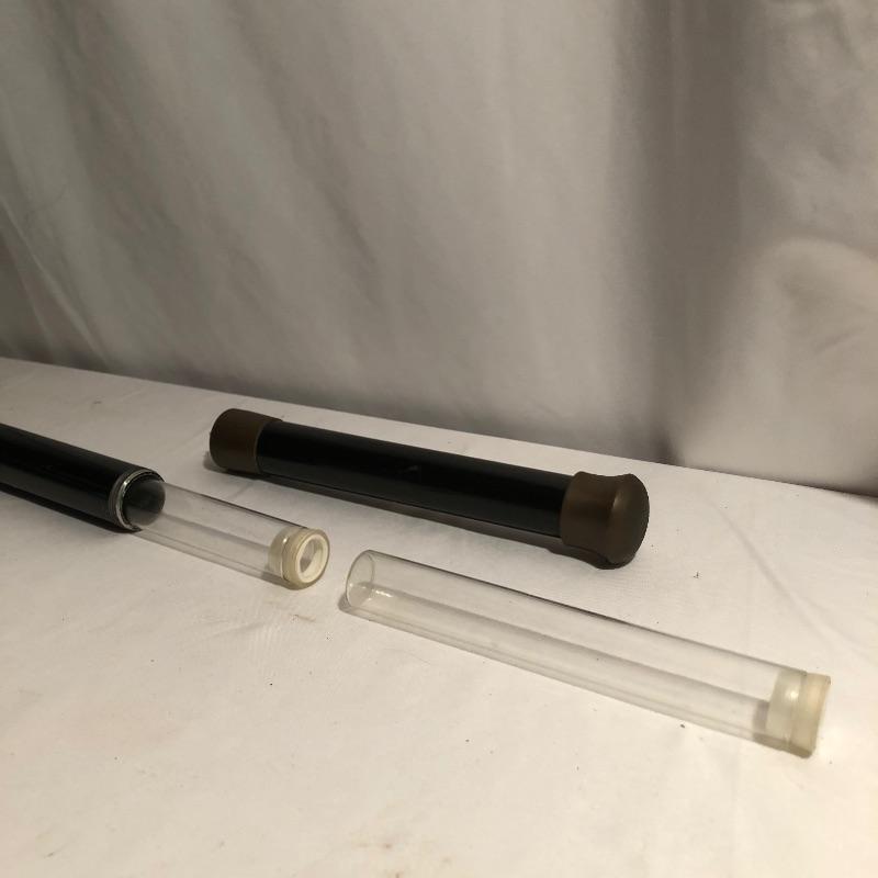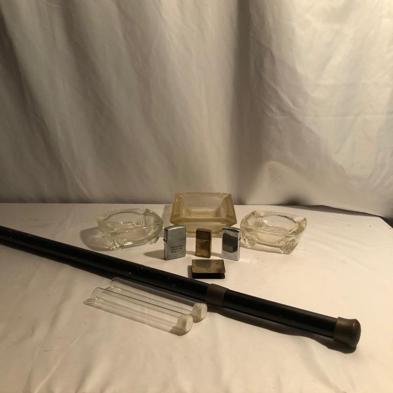 This is not just your ordinary metal walking cane! Store up to 4 cigars with the accompanying 4 tubes that slot neatly into this unique piece. A truly unique find, as if this alone wasn’t enough, we have added 3 ashtrays, two Zippo-style lighters and some blades with case and more to this cigar lovers lot.